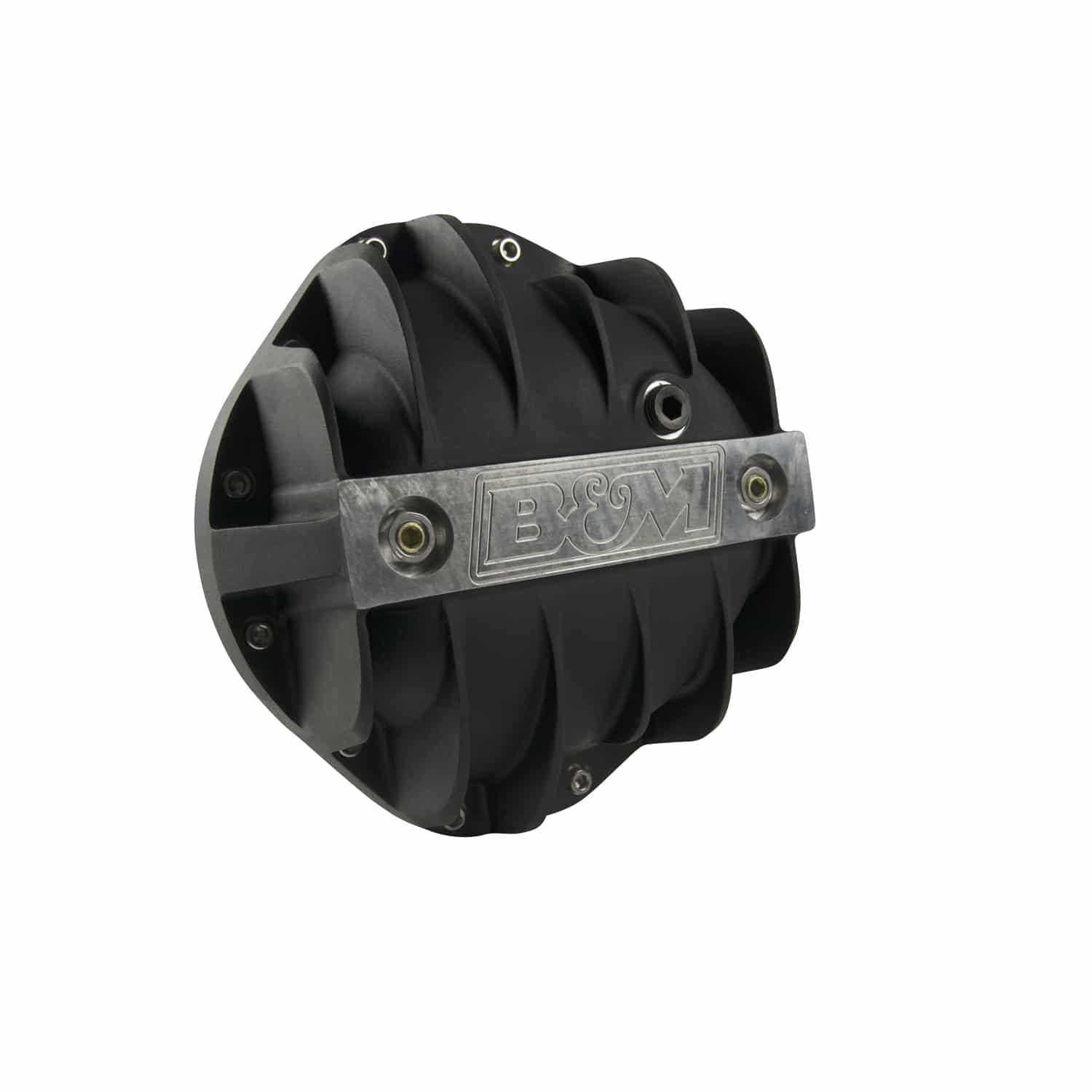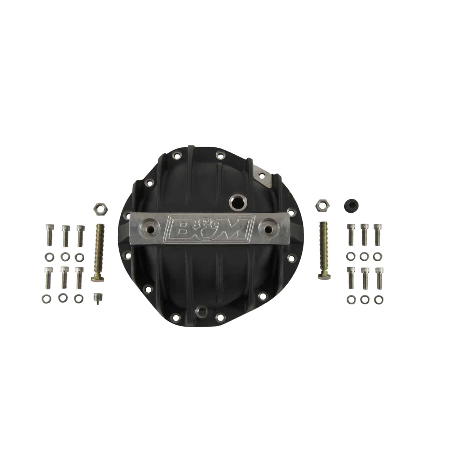 Our engineers designed the line of Hi-Tek differential covers to not only look good but address a number of weaknesses of the factory stamped steel covers. First, they started by constructing the covers of thick A356.0-T6 aluminum, which dissipates heat much faster than the factory steel unit keeping the fluid temperature lower under high-stress loads vs. a steel cover. Then for added durability, we added a reinforced center bar for extra strength along with load bolts to help prevent bearing cap deflection under severe loads. The internal shape of the cover retains the smooth round back internally to help keep the fluid flow going over the ring gear to properly lubricate and cool the bearings and ring & pinion gears. Additional features include a magnetic drain plug for catching ferrous metal particles, MIL-Spec (MIL-A-8625) black anodized finish, machined B&M logo, and all necessary hardware and easy to follow detailed instructions for a quick and simple installation you can do at home. Note: Gasket not included.