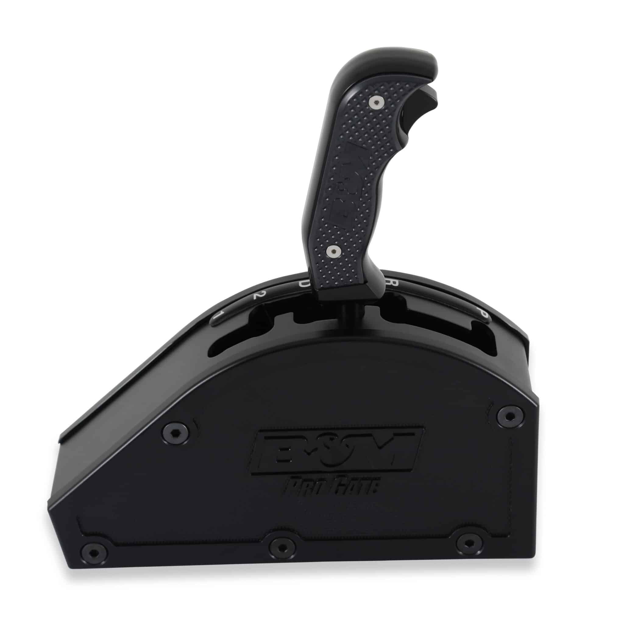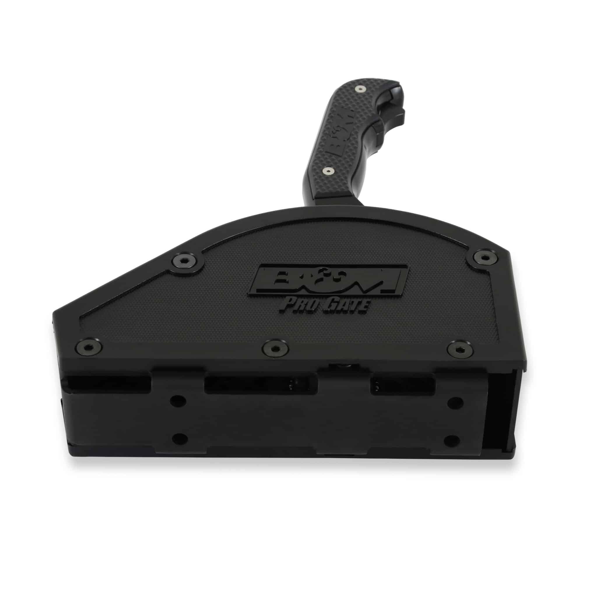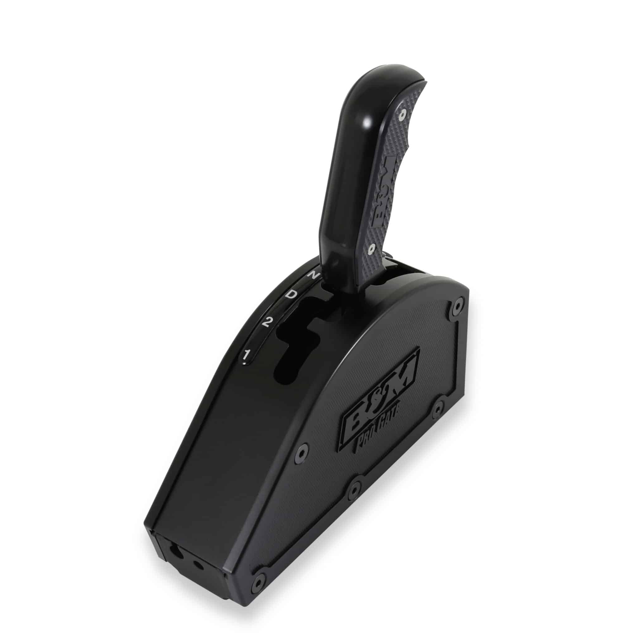B&M Pro Gate shifters are externally gated race shifters. The compact and lightweight design features a 10-gauge black oxide-coated 304 stainless steel base with a heavy-duty 303 stainless steel shift pin for longevity and bullet-proof performance. This model features reverse lockout, a rear-exit cable, and is designed for GM three-speed automatic transmissions with forward-pattern valve bodies. The 1018 steel shift stick includes a black B&M pistol grip for shifting duties while the external gate plate is constructed from black oxide-coated 11-gauge 304 stainless steel for durability. The 3-speed gated forward shift pattern features a staggered shift pattern with positive stops between each gear for easy and precise shifts. Other features include thick injection-molded nylon side covers featuring a knurled texture with the B&M Pro Gate logo on both sides. The covers are removable for access to the virtually maintenance-free shifter sub-assembly and will not gum up with dirt affecting shift performance, which is ideal for Off-Road racing. The rear exit cable design includes a black 5-ft Super Duty race shifter cable along with a cable bracket, shift lever, and all necessary hardware for a straightforward installation. Includes Lifetime Limited Warranty.