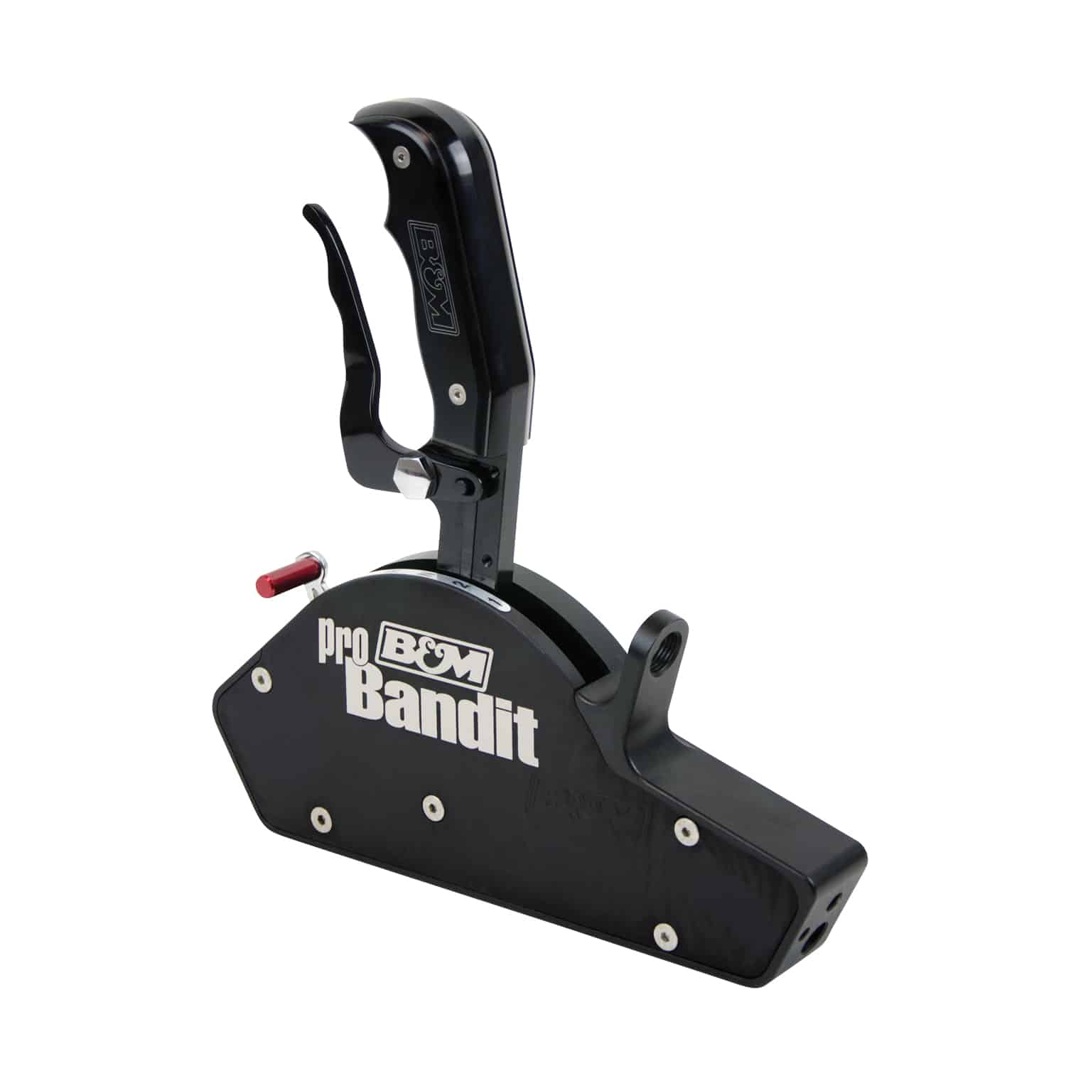 With its cutting-edge Magnum Grip design combined with race-proven mechanics, the Magnum Grip Stealth Pro Bandit offers an unbeatable combination of race performance, functionality, and looks! This race shifter comes set up for 2-speed Powerglide transmissions and is packed with all kinds of features. Starting out as a seven-pound block of 6061-T6 aluminum, the Pro Bandit shifter features CNC machined construction, ergonomically shaped Magnum Grip shift handle with replaceable side grip plates, black anodized finish, reverse lockout meeting NHRA/IHRA safety rules, compatible with forward or reverse pattern valve bodies and capable of controlling 2, 3 and 4-speed automatic transmissions by simply replacing the hardened steel gate plate and applicable bracket and lever. Other features include an 8-foot Super Duty shifter cable, Powerglide Pro Lever, cable quick disconnect extension and offers a built-in mounting location for adding an optional CO2 shift cylinder #80883 or mounting an electric shift solenoid for P/G applications. Comes with detailed instructions for an easy installation. Optional gate plates, cable brackets, lever kits, and side grip plates with and without 12V momentary buttons are available separately. Overall Dimensions – 10L x 1.3W x 9.3H