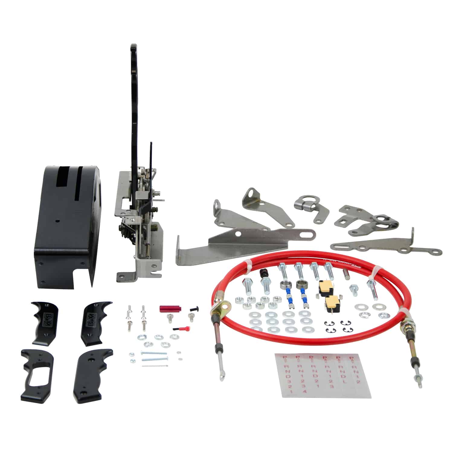 The Magnum Grip Stealth Pro Ratchet shifter is one of our most popular and easiest to operate race shifters. Features include positive ratcheting design that self-centers the handle after each shift giving you maximum clearance behind the shifter and will not allow you to miss a shift by over-shifting a gear. The reverse lockout feature only requires one-hand to operate and meets both NHRA and IHRA safety regulations for racing. Other features include a neutral safety switch, backup light switch, along with a simulated carbon fiber wrapped aluminum cover. The cover is treated to a high quality hydro-dip process and material to add a high-tech and realistic carbon look to your vehicle’s interior, but at a substantial cost savings versus carbon fiber. This shifter includes our Magnum Grip shift handle with replaceable side grip plates, tough black anodized finish, 5-foot long Super-duty shift cable, gear indicator, cable brackets and transmission levers for use with most popular 3-speed transmissions. Comes with all necessary hardware and detailed instructions for an easy at home installation. Be sure to check out all the optional side grip Comes with all necessary parts for use with three and four-speed automatic transmissions such as 1966 and later Chrysler Torqueflite A727, A904, A500, A518, Ford C4, C5, C6, GM TH200, TH250, TH350, TH400, 2004R, 700R4, 4L60, 4L60E – 4L85E without PRNDL switch. Notes: Ford AOD transmissions require installation kit #40496, AODE and 4R70W require installation kit #40504, E40D and 4R100 require installation kit #40505 and GM 4L60E – 4L85E transmissions with PRNDL switch require cable bracket #70499. Overall dimensions – 10.75L x 2.9W x 12H