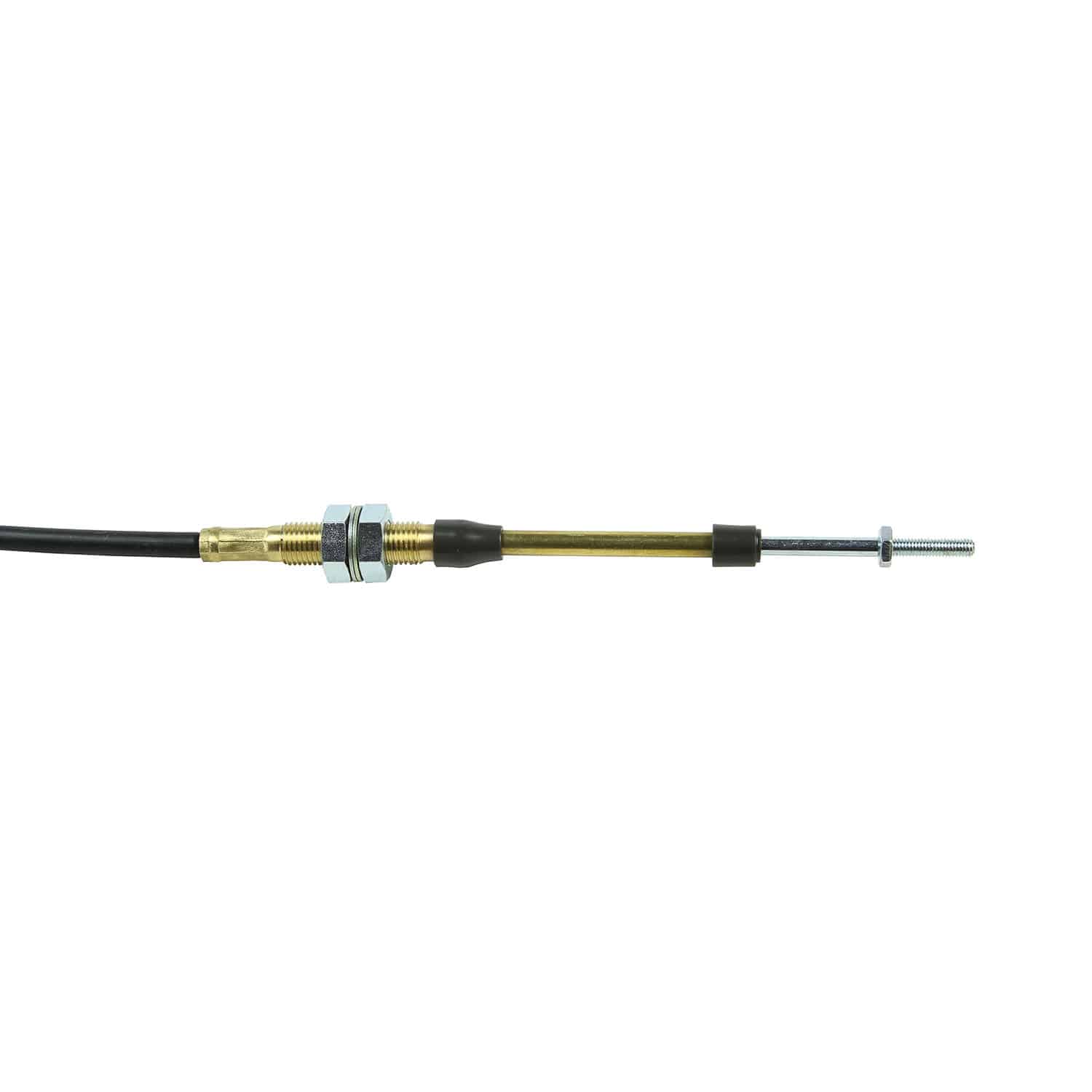 B&M performance shifter cables are available with a black cable housing for most B&M street shifters. This is our 5-foot performance replacement shifter cable for most B&M automatic shifters. It is properly clearanced to reduce backlash and has a .250-inch ‘long-lay’ (stiffer, less prone to kinking) black outer jacket for durability. The cable features an eyelet at one end to connect to the shifter and a 10-32 threaded end at the transmission side of the cable and has a 2.50-inch stroke. This is the standard cable supplied with most B&M Shifters.