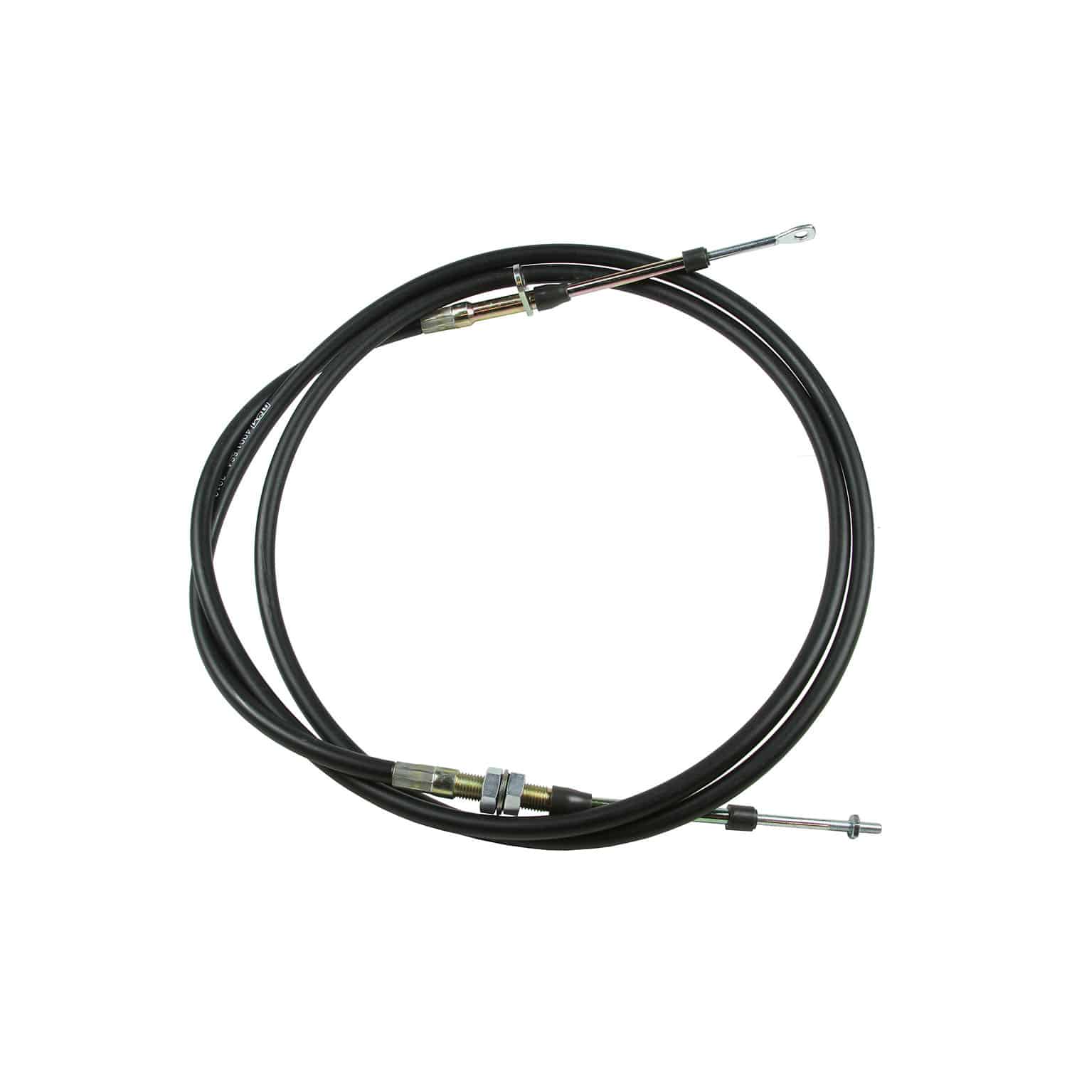 B&M hard-core Super Duty Race shifter cables are available with a black cable housing for most B&M shifters. These are available in 3, 4, 5, or 8-foot lengths. It’s properly clearanced to reduce backlash to within .015-in/ft. and has a large 0.375 inch ‘long-lay’ (stiffer, less prone to kinking) outer jacket for durability and dependability. The cable features an eyelet at one end to connect to the shifter, and a 10-32 threaded end at the transmission side of the cable and has a 2.50-inch stroke. This is the same type of cable supplied when you purchase a B&M Race shifter.