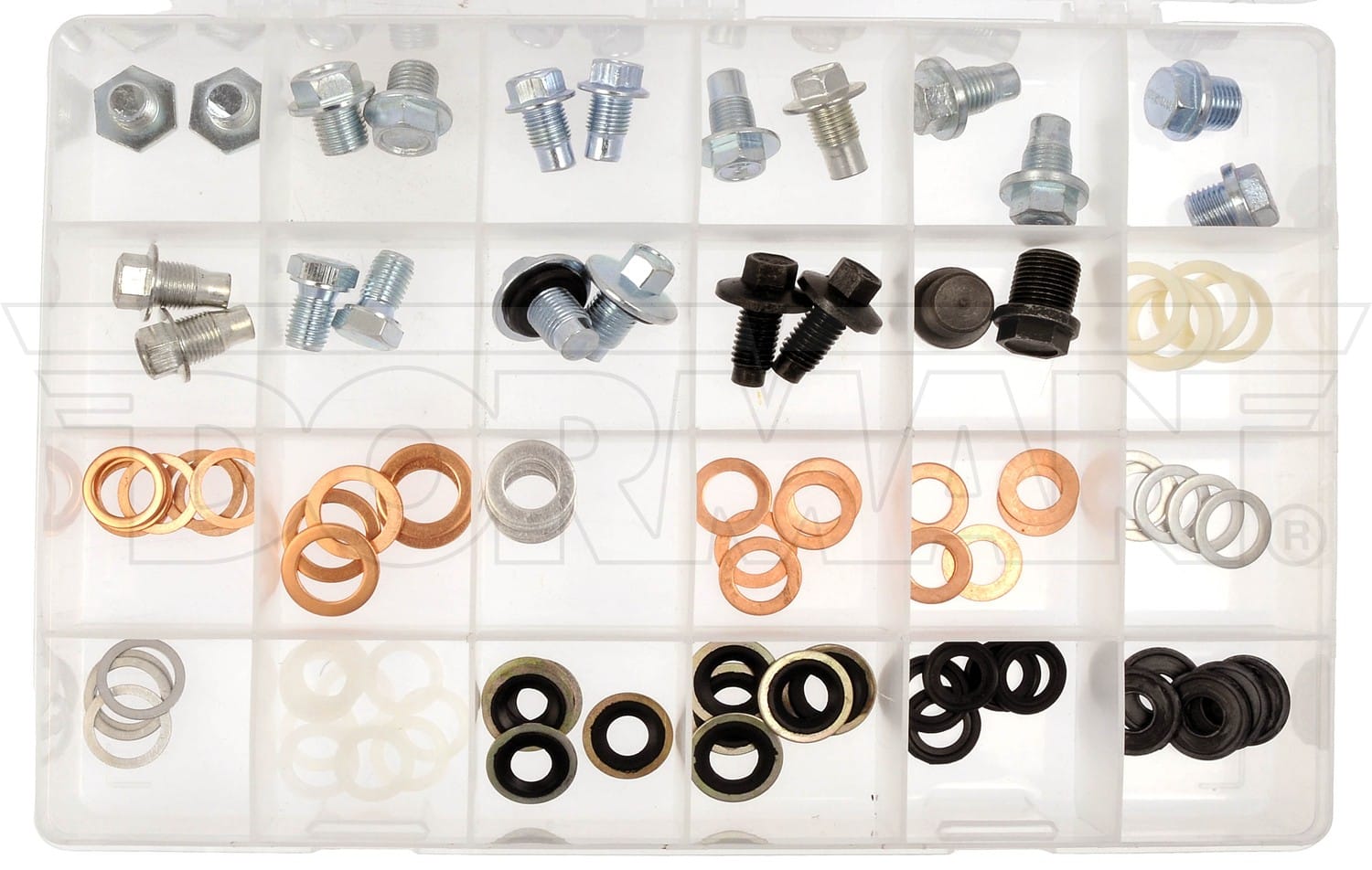 Our Engine Oil Drain Plug Assortment contains the most popular oil drain plugs. Many styles are offered, including Pilot Point, Universal and Differential. Replacement is essential during routine vehicle oil changes.