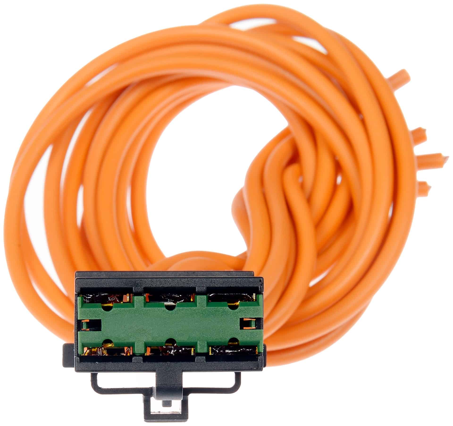 This HVAC blower motor resistor kit includes a resistor and harness pigtail to replace an overheated or corroded original equipment resistor on certain vehicles.