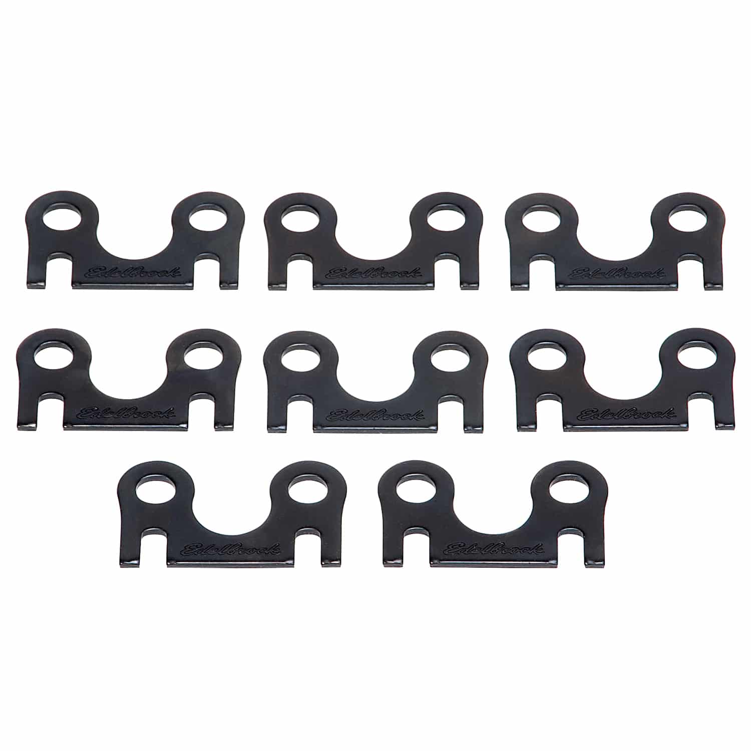 Edelbrock part #9669 Guide Plate is made from high-grade alloy steel and hardened to 60 Rockwell “C”. Stepped plates support pushrods closer to the rockers stabilizing them. Sold in sets of 8.