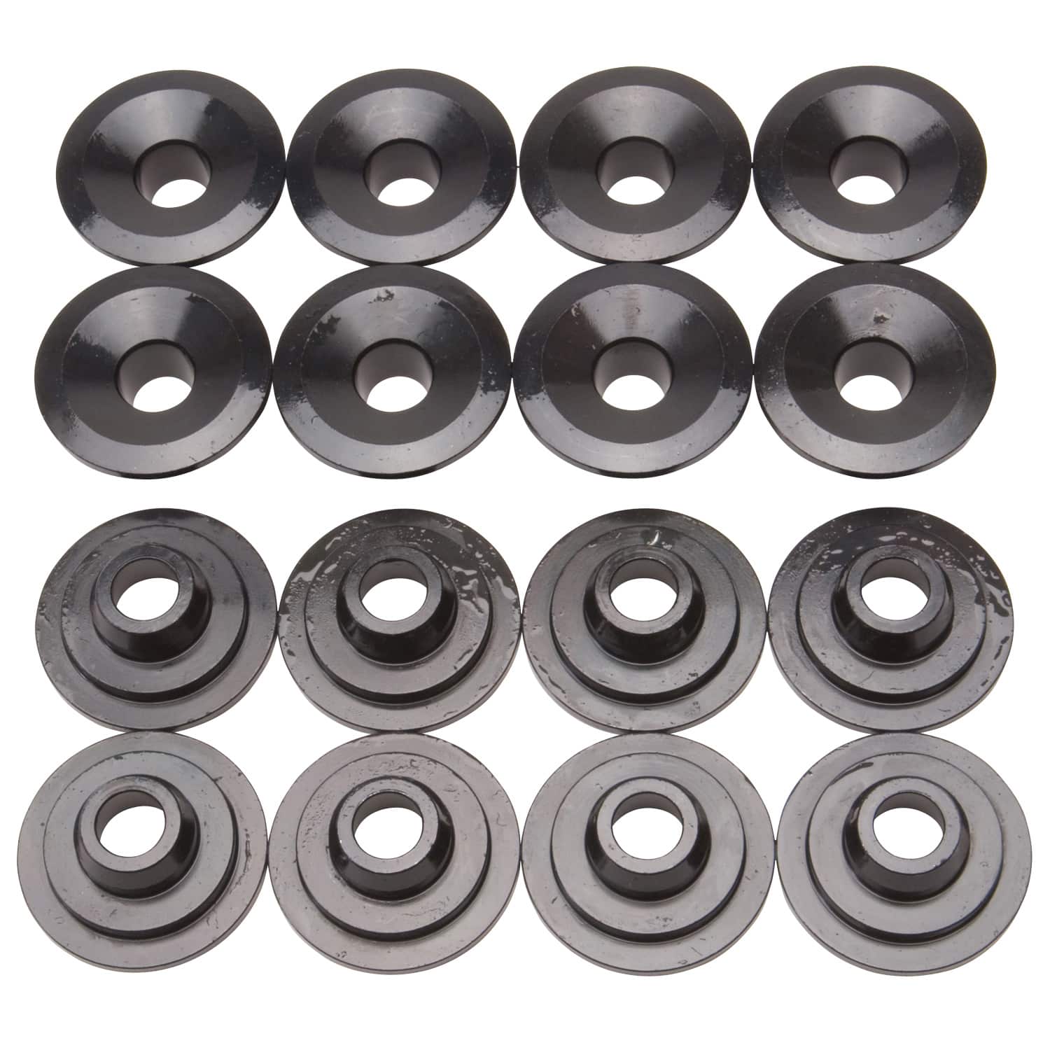 The Edelbrock #9715 Valve Spring Retainers work with 11/32″ Valve Stem and 7 Deg Locks. Made of superior quality steel, they are machined and heat treated for maximum strength. Black oxide finish to prevent rust and corrosion. Set of 16