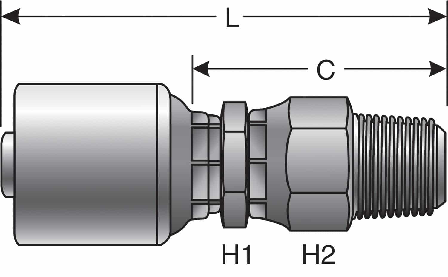The patented “C†insert pre-assembled MegaCrimp coupling gives world-class, leak-proof performance. It is designed with a patented “C†insert attached to the ferrule that accommodates hose of different constructions and wall thicknesses. The insert’s design ensures crimping forces are evenly distributed to form a concentric seal. The “C†insert simplifies inventory requirements since one MegaCrimp coupling size can accommodate various hose outside diameters, on both one- and two-wire braid hydraulic hose. Not to be used as a live swivel.