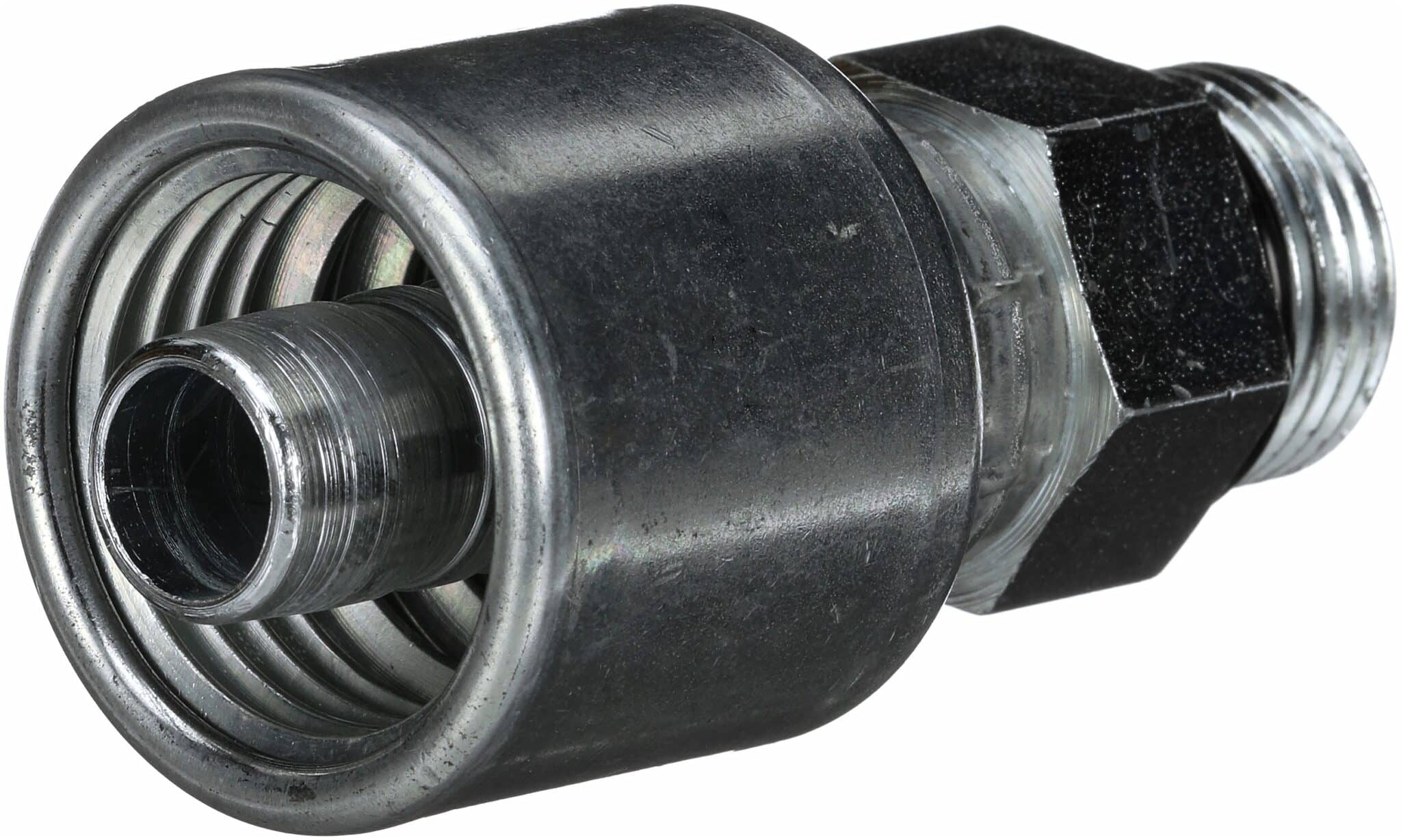 The patented “C” insert pre-assembled MegaCrimp coupling gives world-class, leak-proof performance. It is designed with a patented “C” insert attached to the ferrule that accommodates hose of different constructions and wall thicknesses. The insert’s design ensures crimping forces are evenly distributed to form a concentric seal. The “C” insert simplifies inventory requirements since one MegaCrimp coupling size can accommodate various hose outside diameters, on both one- and two-wire braid hydraulic hose. SAE J1926/3 ISO 11926-3 Light-Duty (L Series) Stud End.