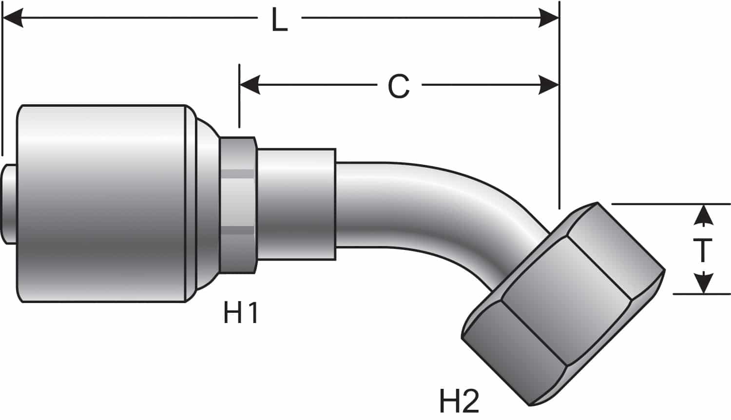 Coupling Description | MegaCrimp Female Flat-Face O-Ring Swivel – 45 Bent Tube |