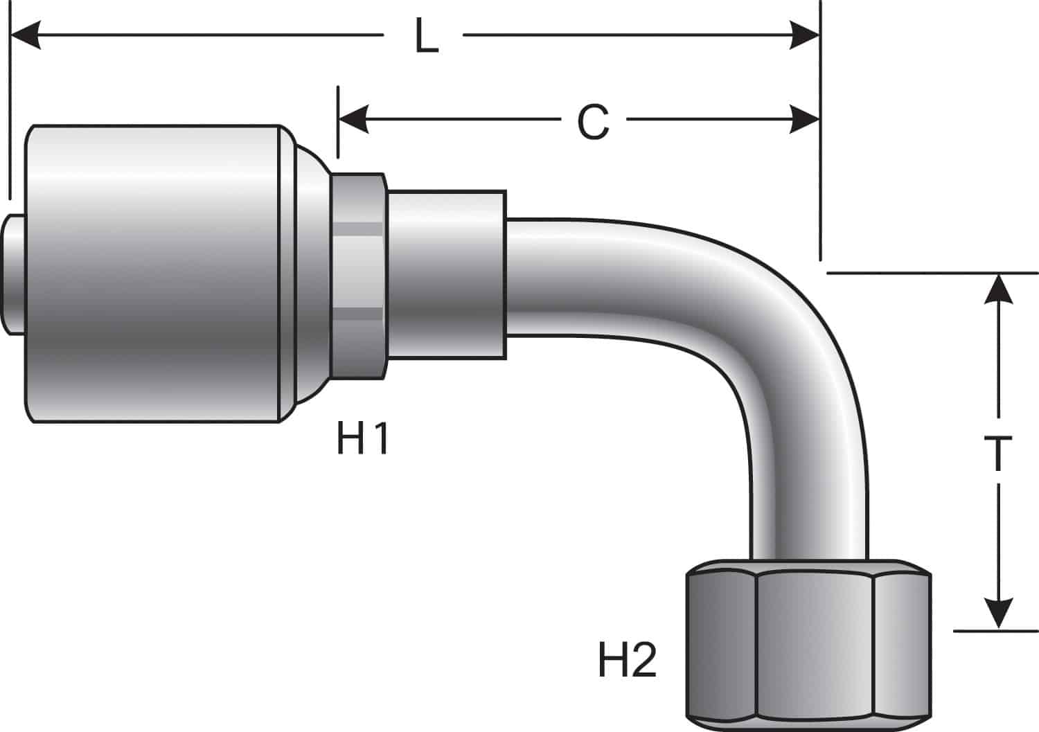 Coupling Description MegaCrimp Female Flat-Face O-Ring Swivel – 90 Bent Tube