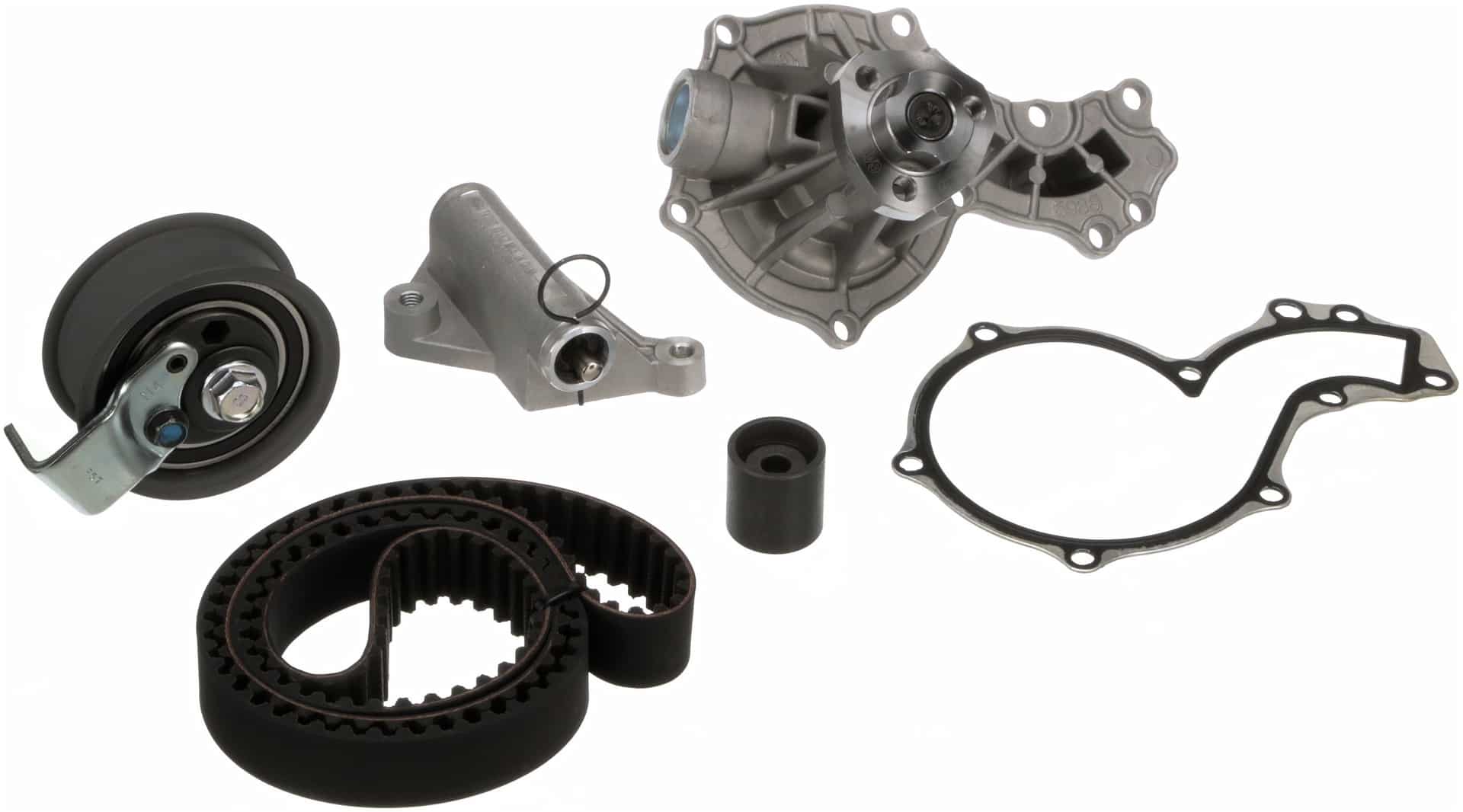 Gates Timing Belt Component Kits with Water Pump offer customers the best and most complete repair solution by including the same premium components as our TCK’s – timing belts, pulleys and tensioners – as well as a water pump. Timing belt driven water pumps should always be replaced at the same time as the timing belt. Don’t take chances. With Gates TCKWP’s, you can avoid returns by replacing all critical system components at the same time.