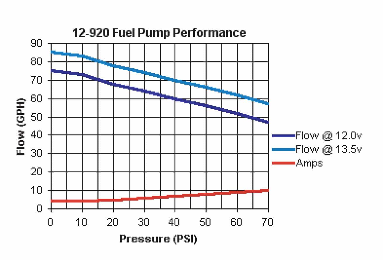 The 12-920 universal in-line fuel pump is intended for Throttle Body EFI, Multipoint EFI and Forced Induction Multipoint EFI systems. It is designed to work in-line, not inside the tank, so installation is a snap. The 12-920 is rated for continuous duty service and have been tested up to 2,500 hours.