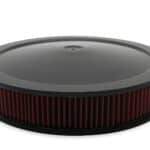 Holley is proud to offer a breath of fresh air with our new 16″ drop-base 4500 air cleaner assemblies and filters. Available in chrome or EDP black. The assemblies are available with a red washable gauze element or a white pleated paper element to offer the look you have in mind. The tops are so large and smooth we decided to leave them plain for a nice stealth look, or to use as a canvas for creating your own look. They feature a 15/16″ drop-base so hood clearance is gained above without creating clearance issues below.