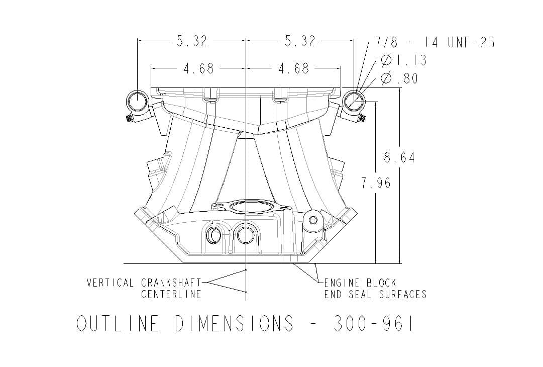 - 2.40” tall x 1.60” wide port flange openings, uses Mr. Gasket intake manifold gasket #5817