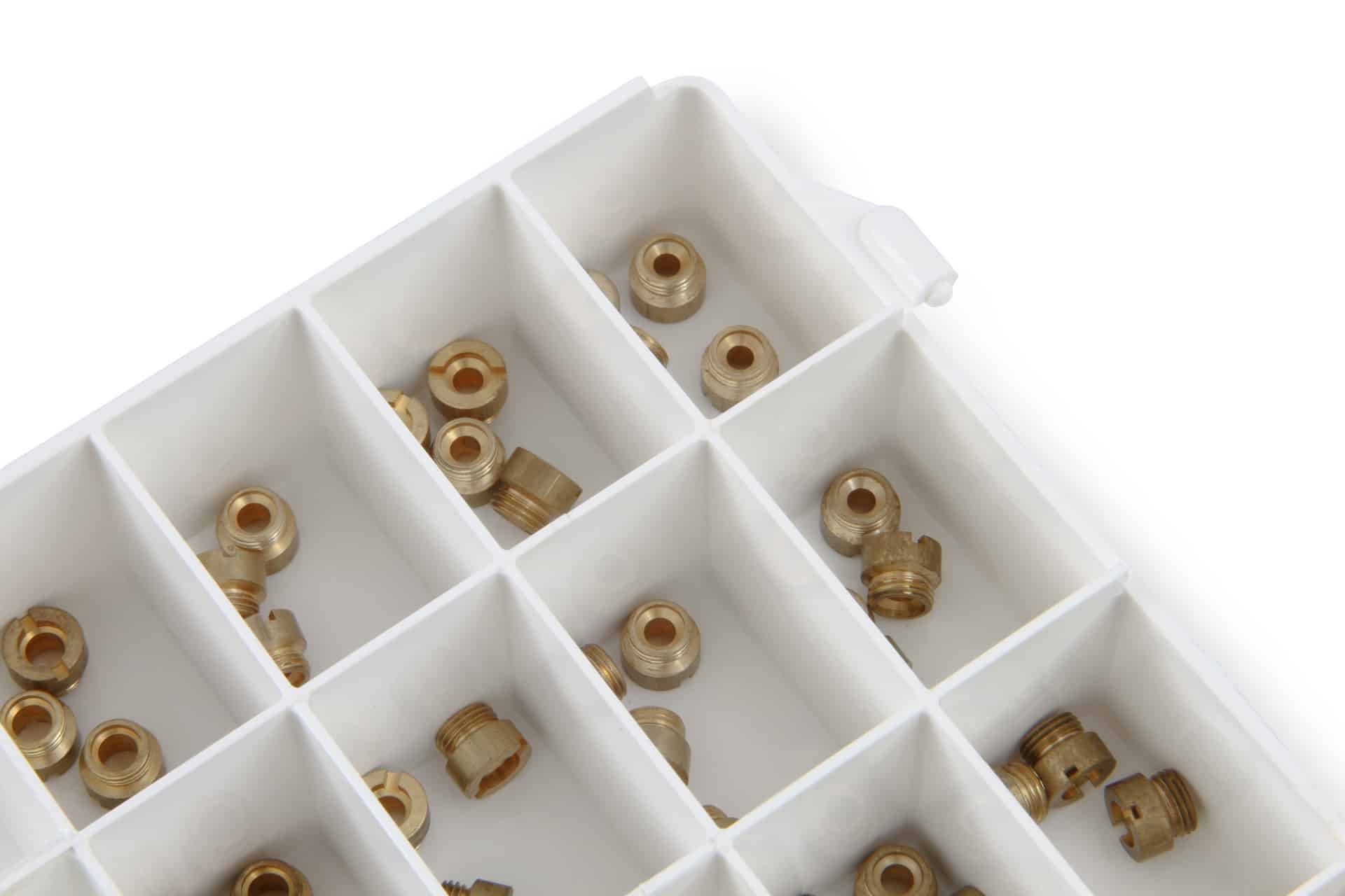 This Holley jet assortment kit consists of 4 EA. of 24 standard length jets that range in size from .132″ to .200″. These jets will not fit the standard Holley metering block; they are designed to fit only the 750 and 950 CFM HP and 0-80586 DOMINATOR alcohol carburetors featured elsewhere in this catalog. The assortment is packaged in a durable plastic carrying case.