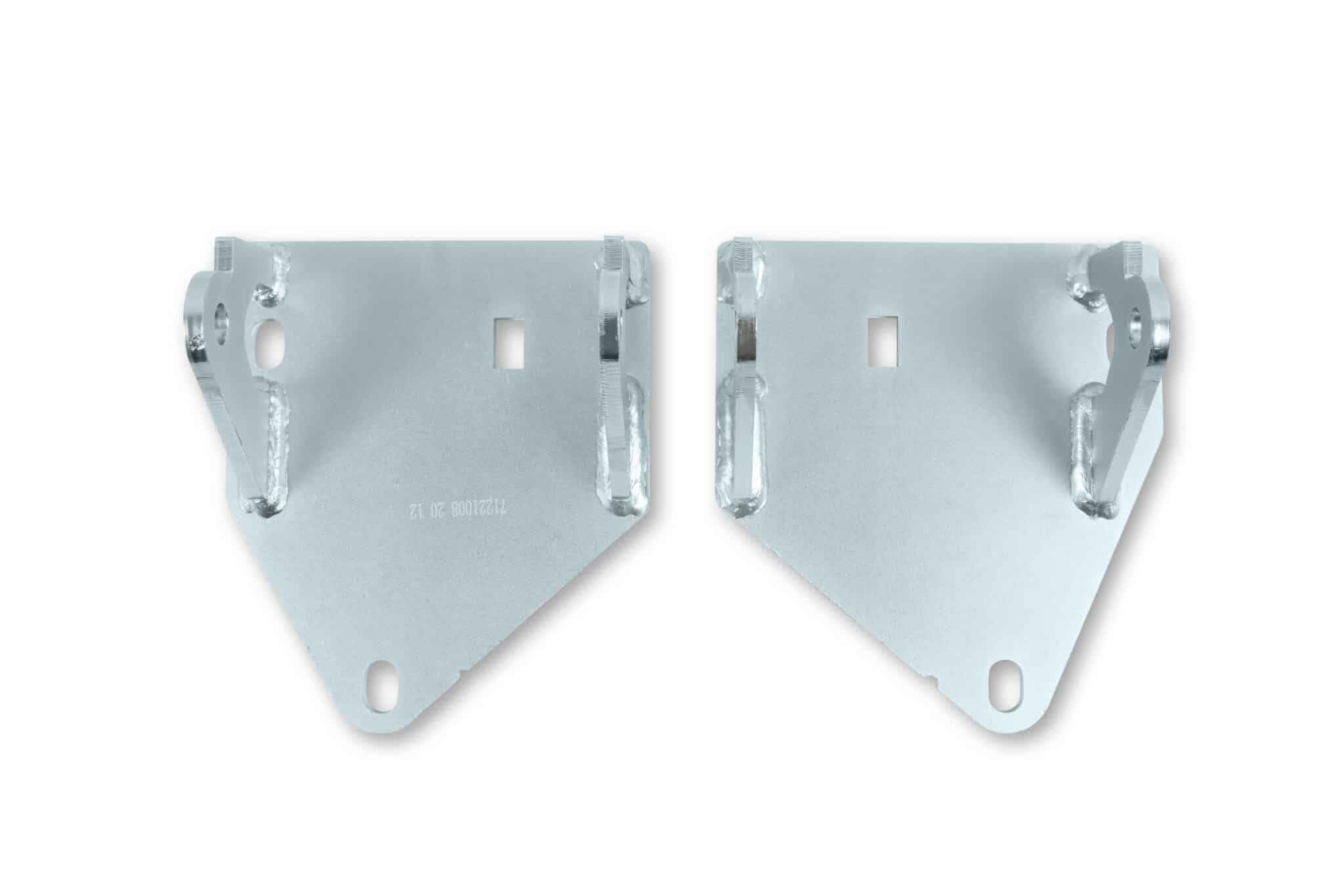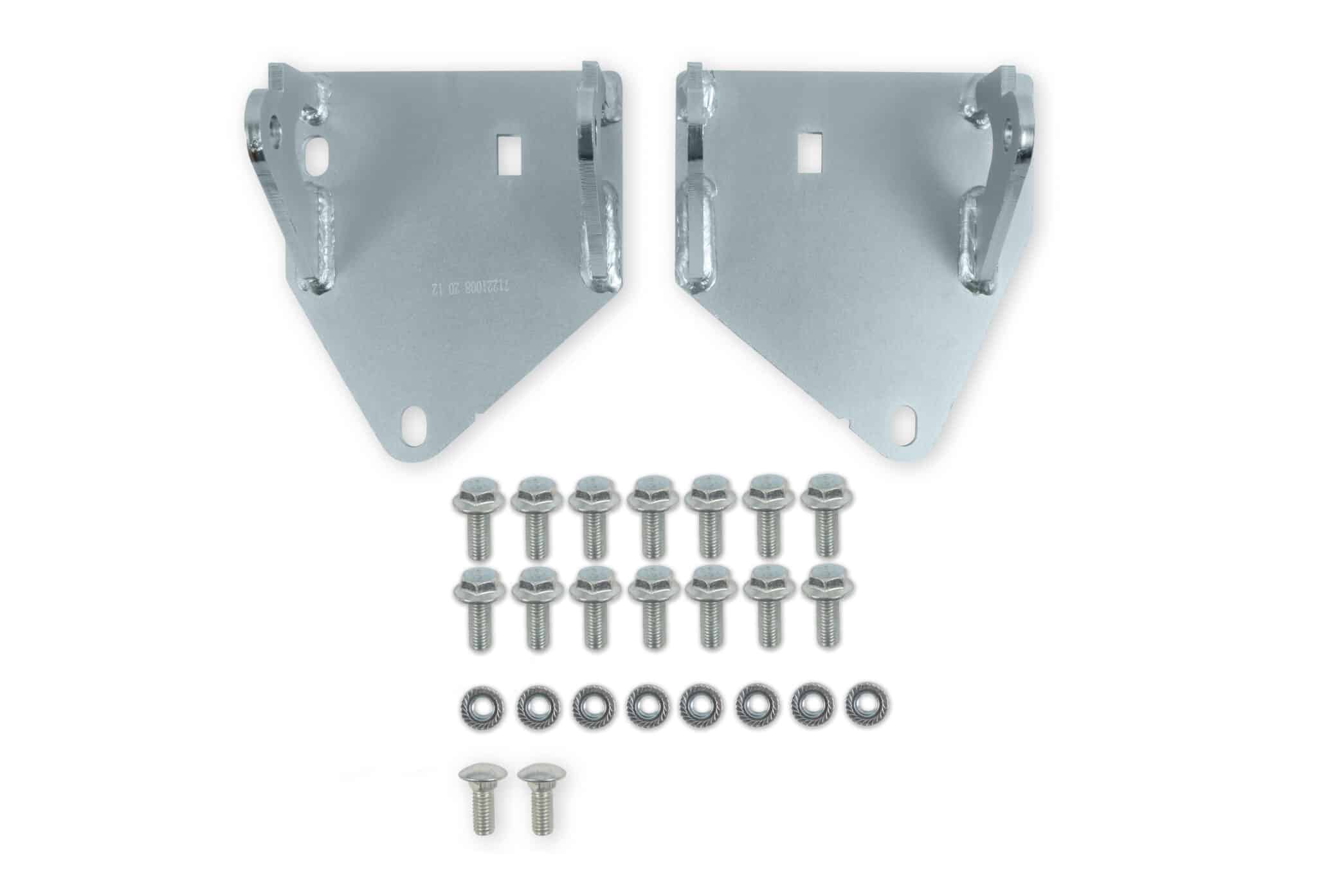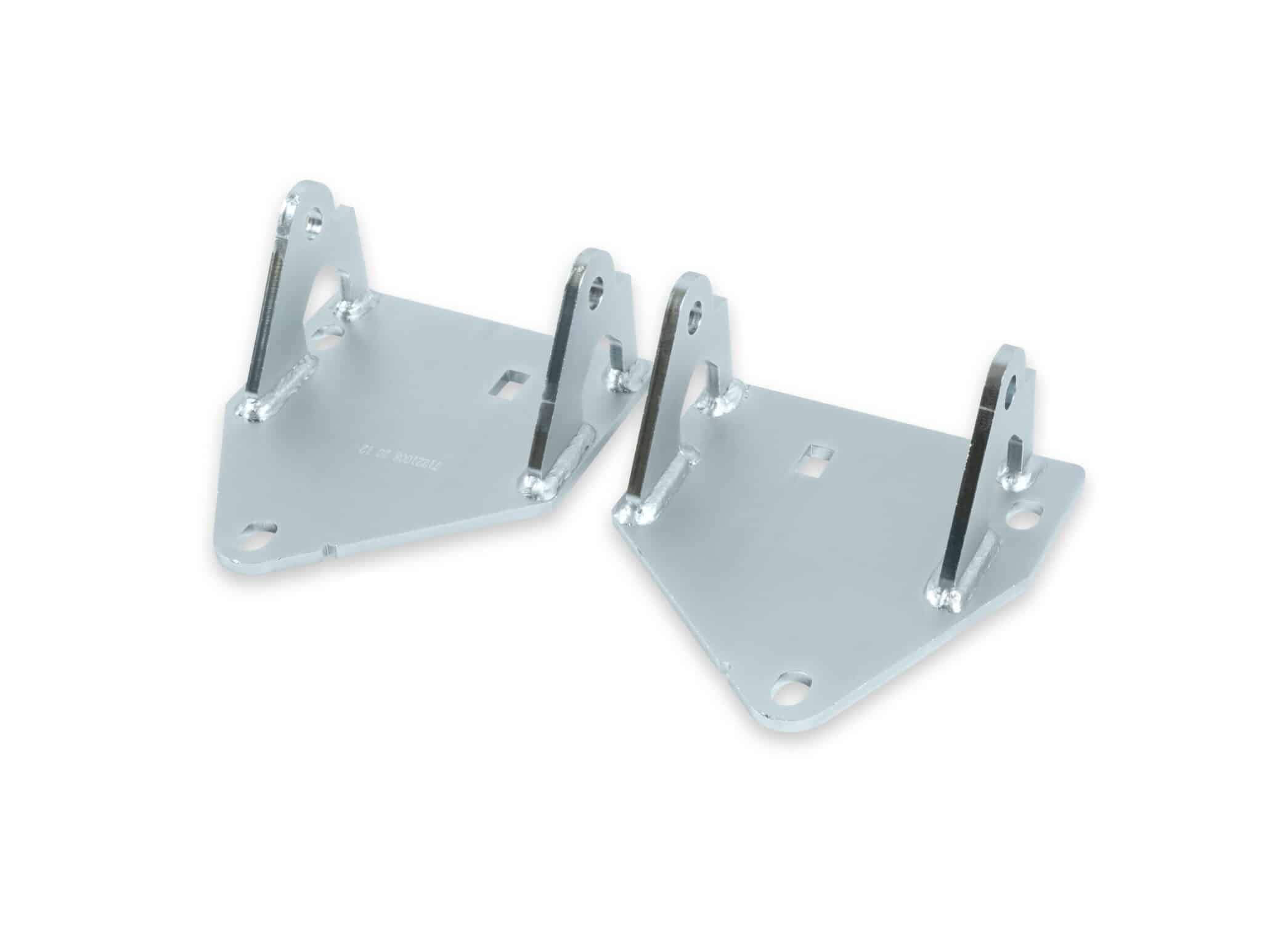 - Brackets move the engine/transmission mating plane 1” forward from the stock SB Chevy location to achieve better clearances and drivetrain geometry when installing late model GM automatic and T56 transmissions