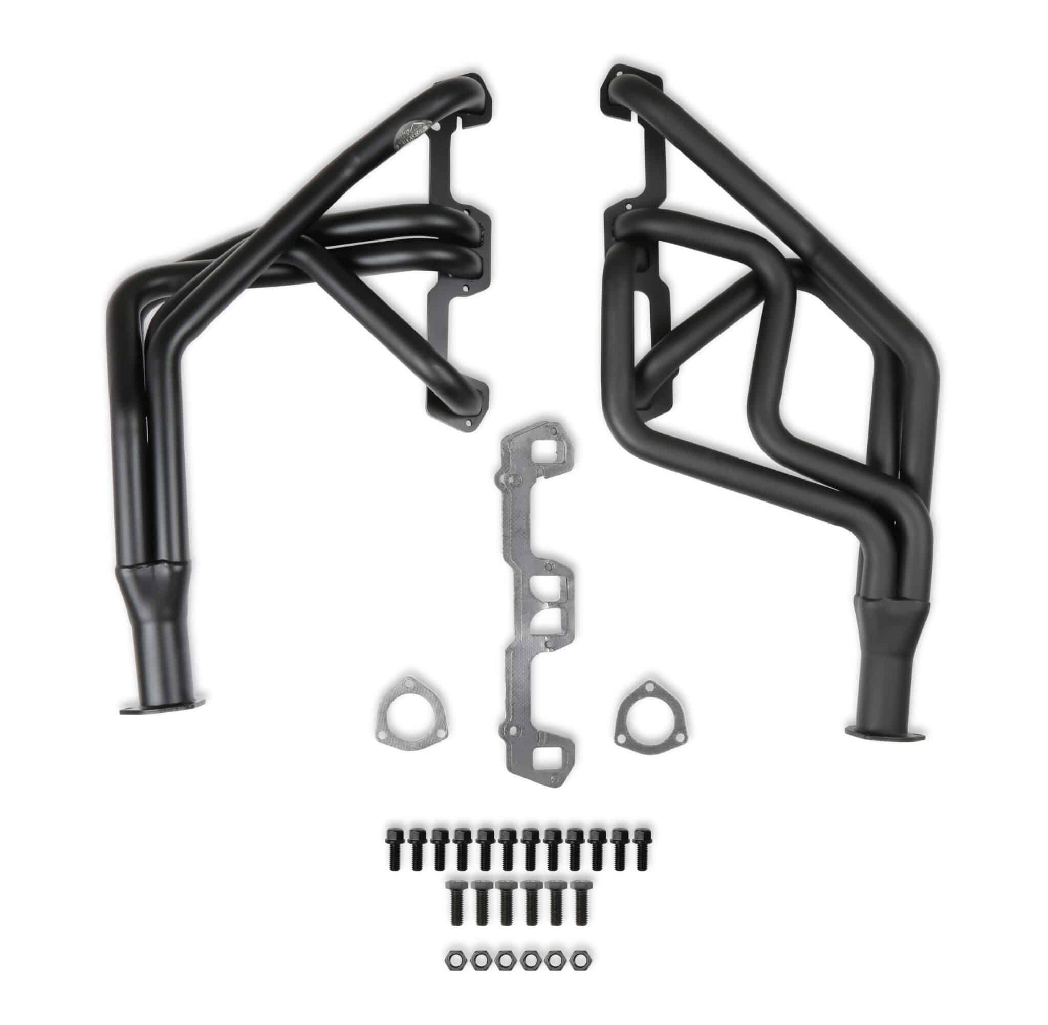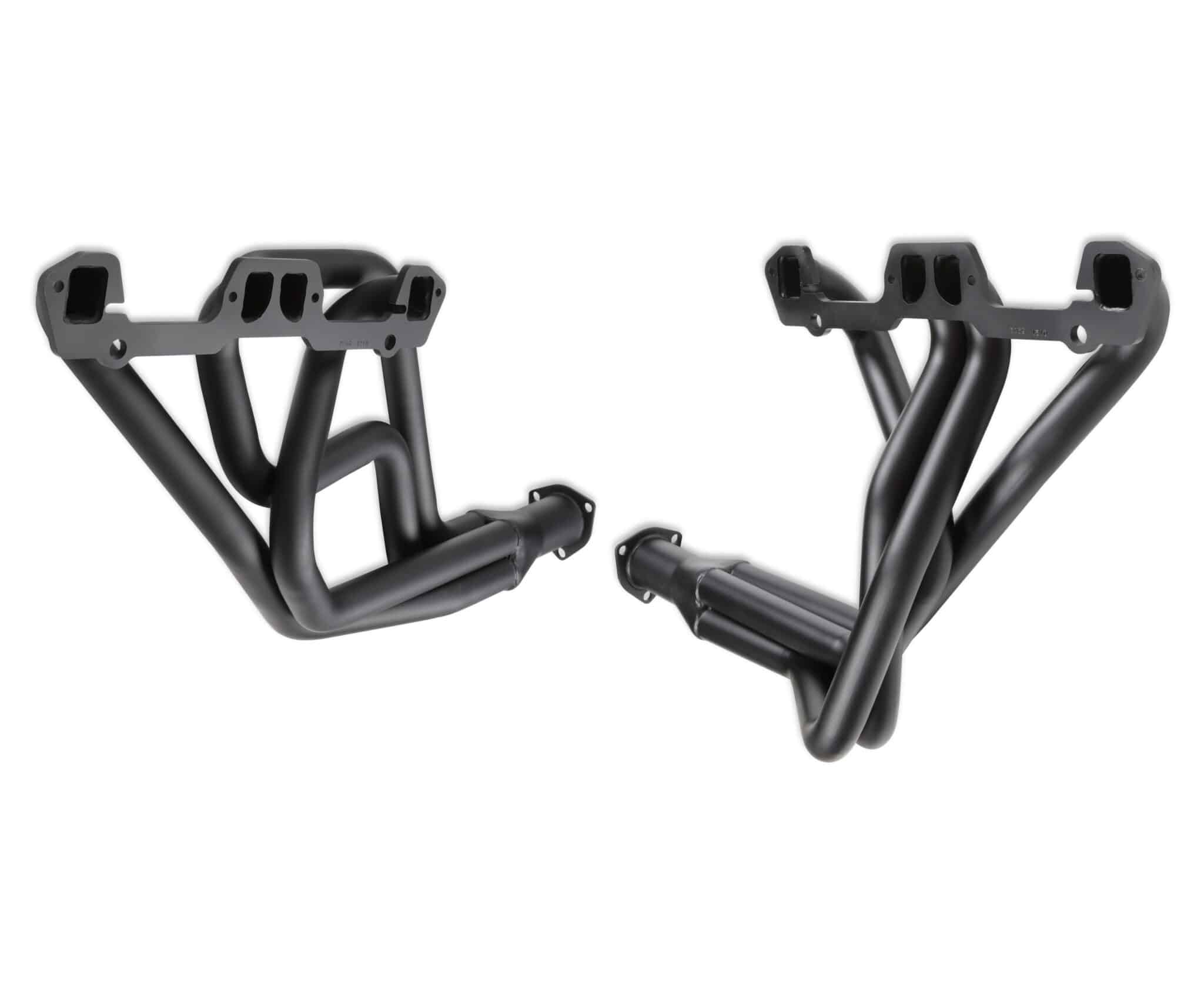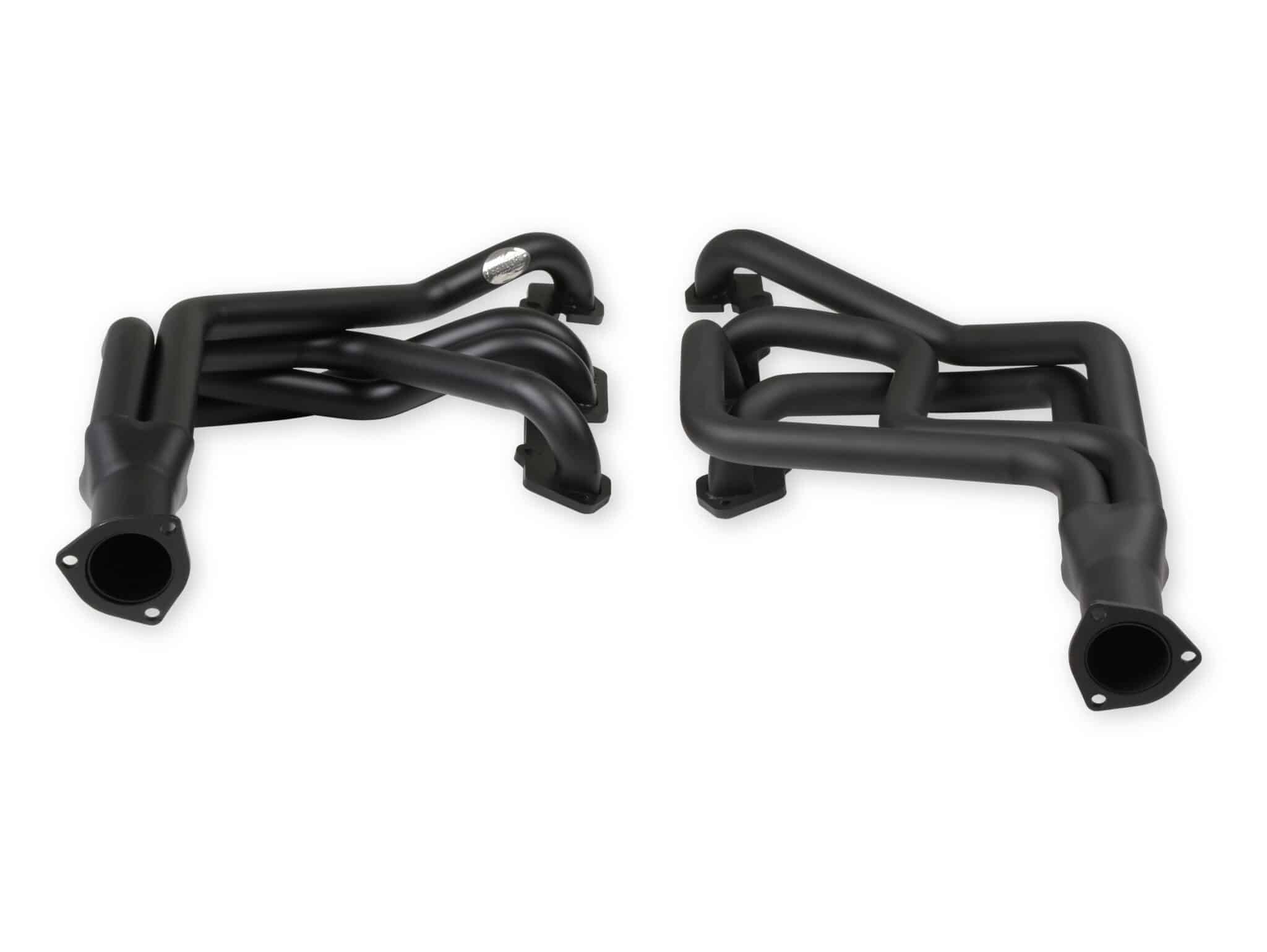 Hooker Competition headers offer the best value in the high performance header market. Designed for the value-conscious buyer, Hooker Competition headers offer premium features at a very competitive price. Made of durable 16 gauge mild steel tubing, the Hooker Competition header design utilizes a long transition collector to reduce back pressure and increase exhaust flow. A perfect sealing surface is assured with the 5/16″ machined flanges, with welded O-ring seals. Experience has proven that this flange size is ideal to maintain header integrity and be pliable enough to seal each exhaust port. Tubing is mandrel-bent to maintain metal strength and provide consistent tube diameter at radii to maximize performance. Hooker Competition headers have a standard finish that features a heat-cured, high-heat-resistant paint. Optionally, the famous Hooker Ceramic Thermal Barrier Coating is available.