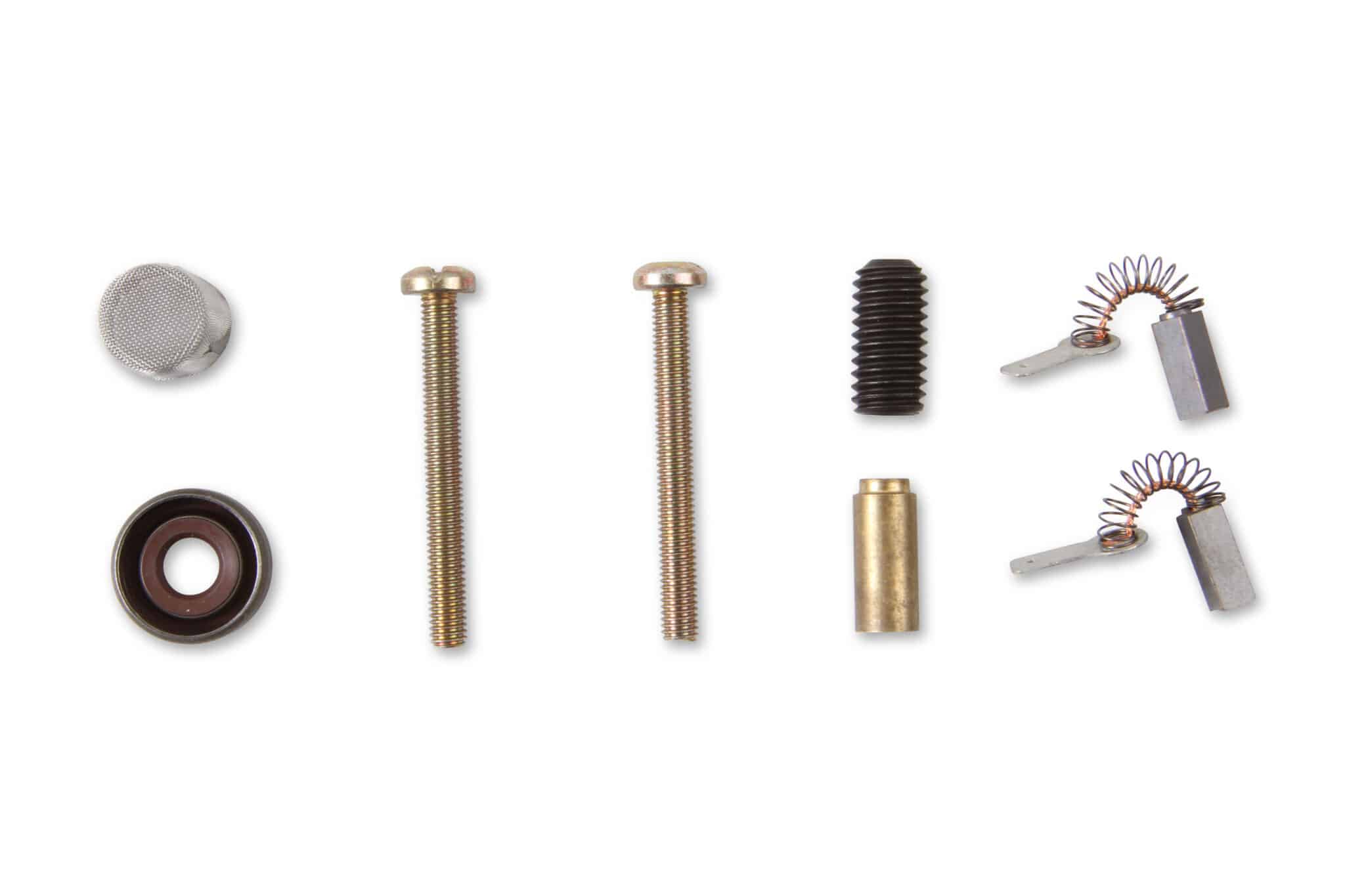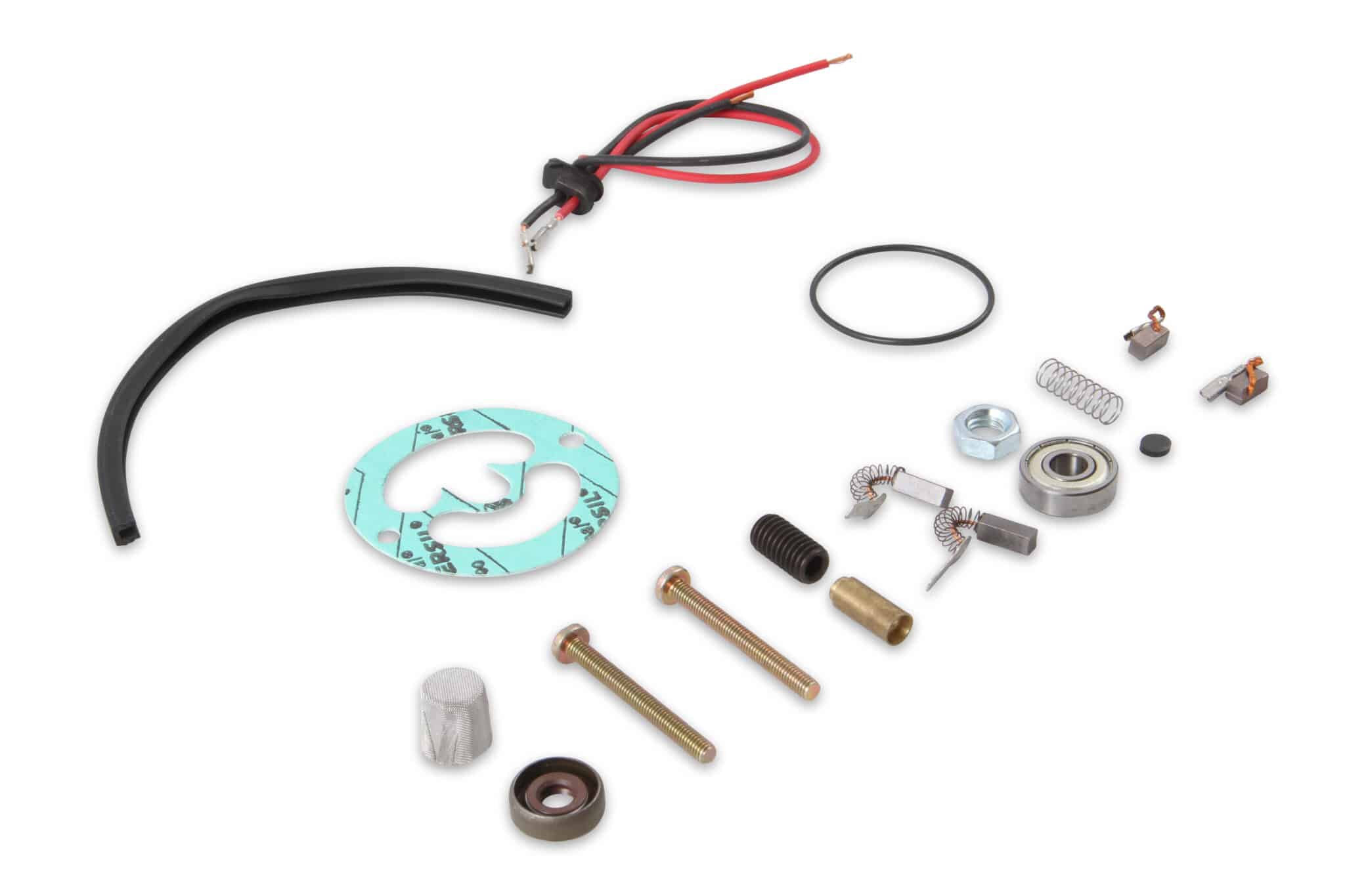 Overhaul kit for Gas type Mallory Fuel Pumps comes supplied with bearing, seals, gasket, and brush kit.
