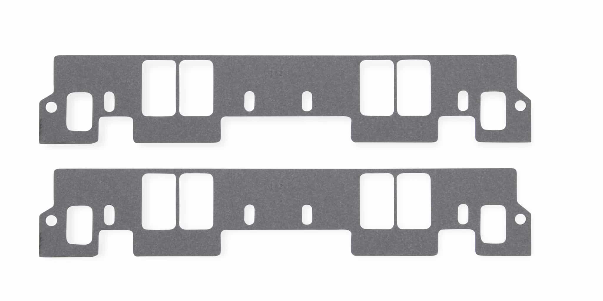 Mr. Gasket Performance Intake Gaskets are manufactured from cellulose/nitrile composition gasket material. This is a low density material that conforms well to irregular surfaces and has very good crush resistance at high flange pressures. They provide excellent sealing and durability as the material is designed for sealing gasoline, oils, water and coolant in applications up to 350 degrees Fahrenheit. While die-cut for an excellent fit, they can be trimmed if necessary for modified port applications. For original equipment replacement, high performance street, drag race and oval track.
