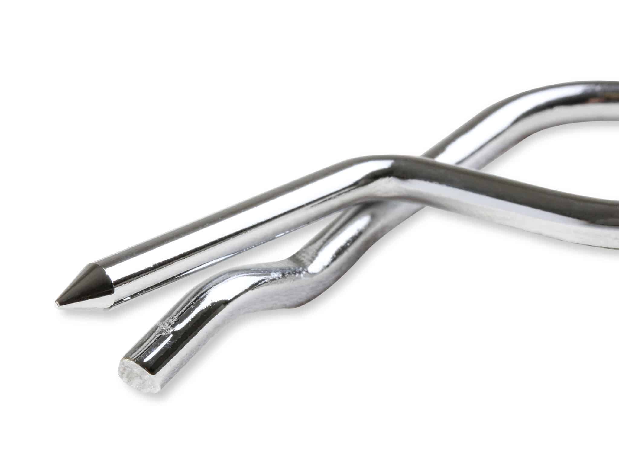 This chrome plated steel hood pin kit is perfect for all your high performance street, drag and oval track applications. The kit has the lanyards to prevent loss of the safety pins. The 2-1/2 inch scuff plates prevent scratching.