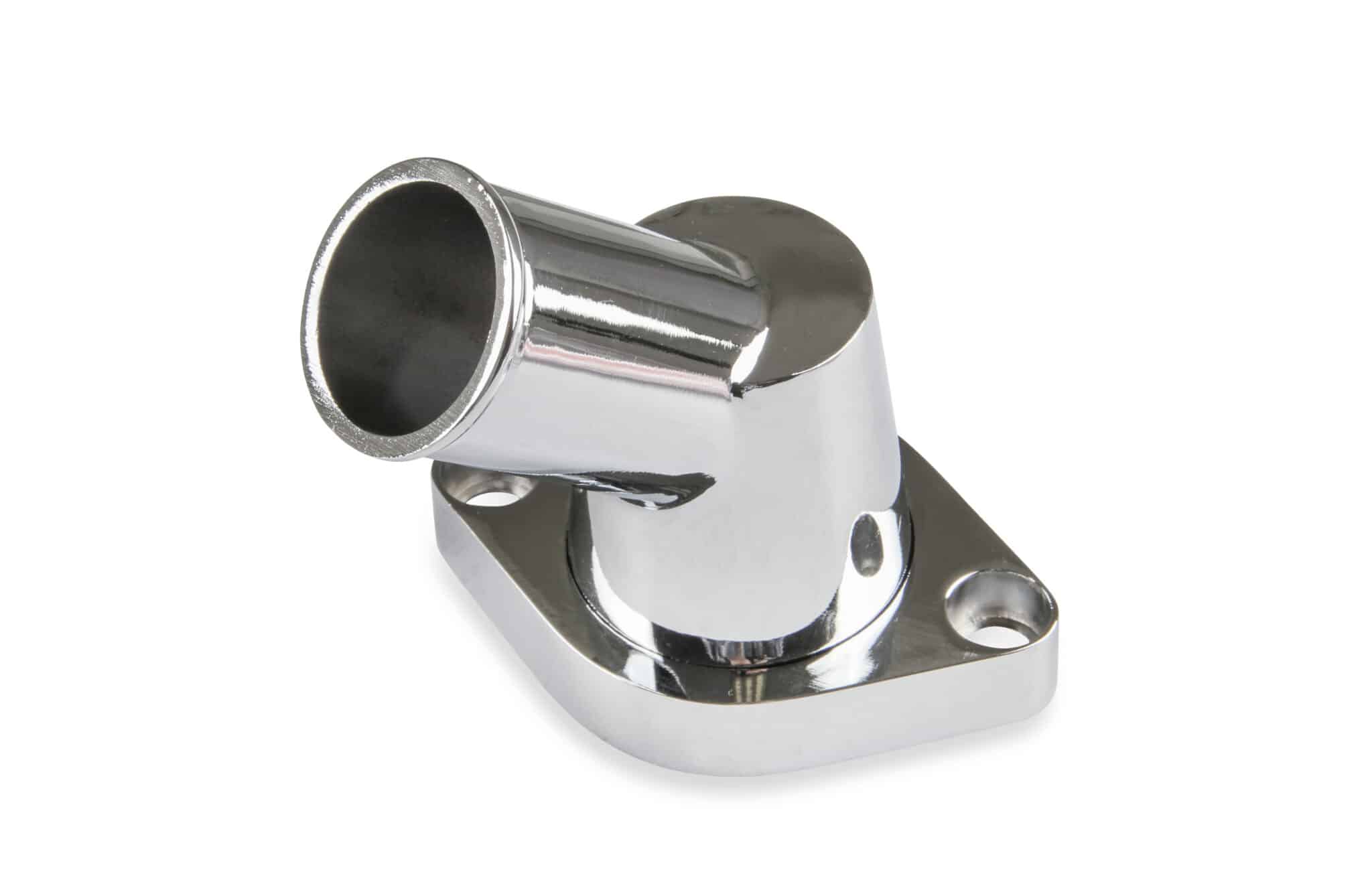 Chrome water neck with a swivel top allows you to place your coolant hose where you want it to be, not just where the neck allows. Precision die cast for better fitment, these water necks are first polished to a high luster, then chrome plated. Features an O-ring style seal to prevent water leaks. Comes with O-ring gasket and mounting bolts.