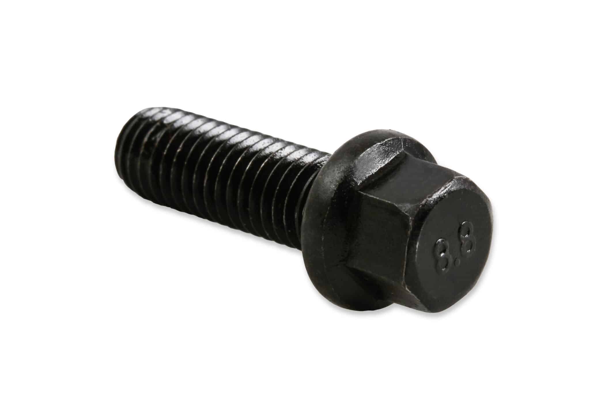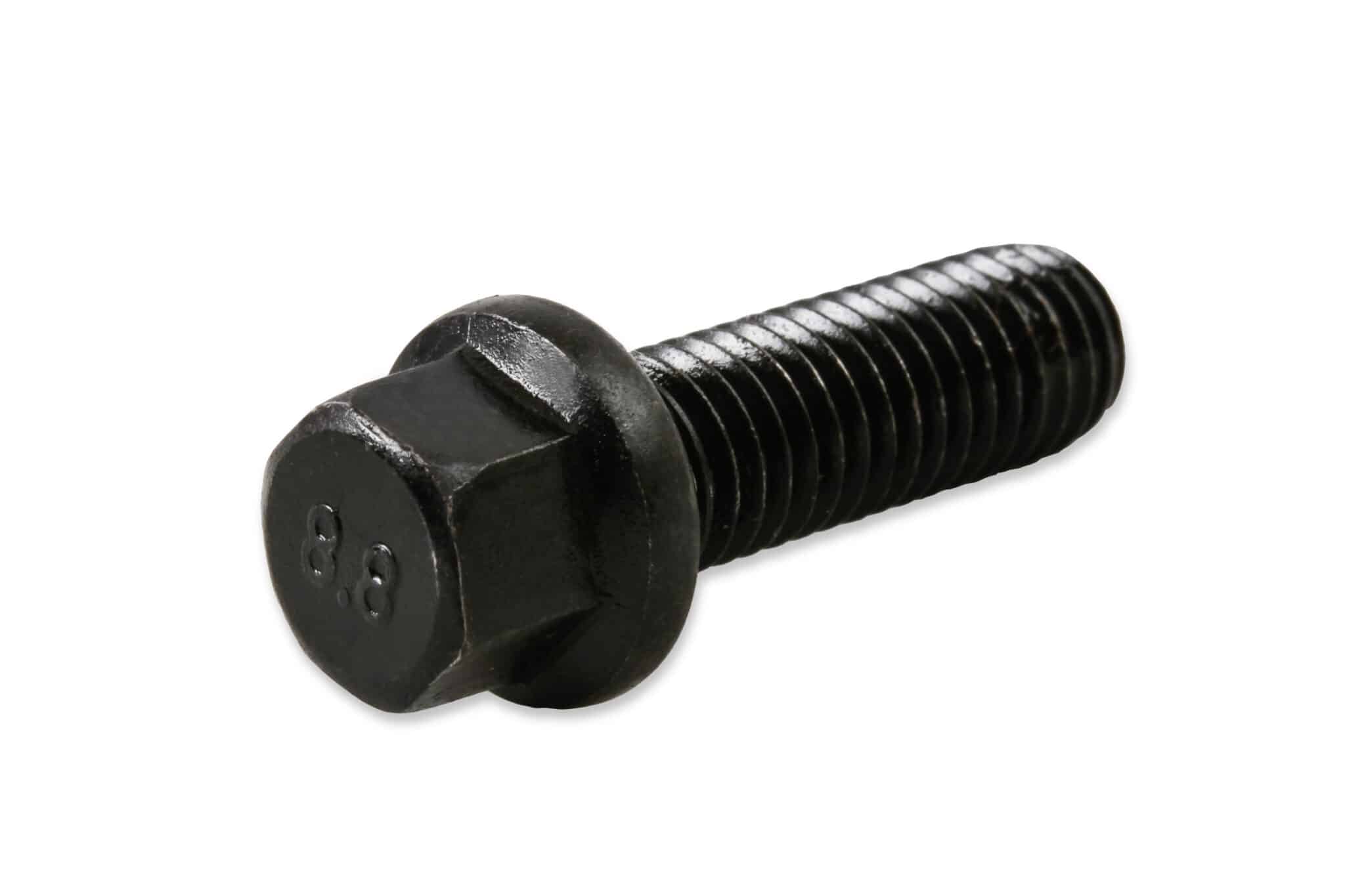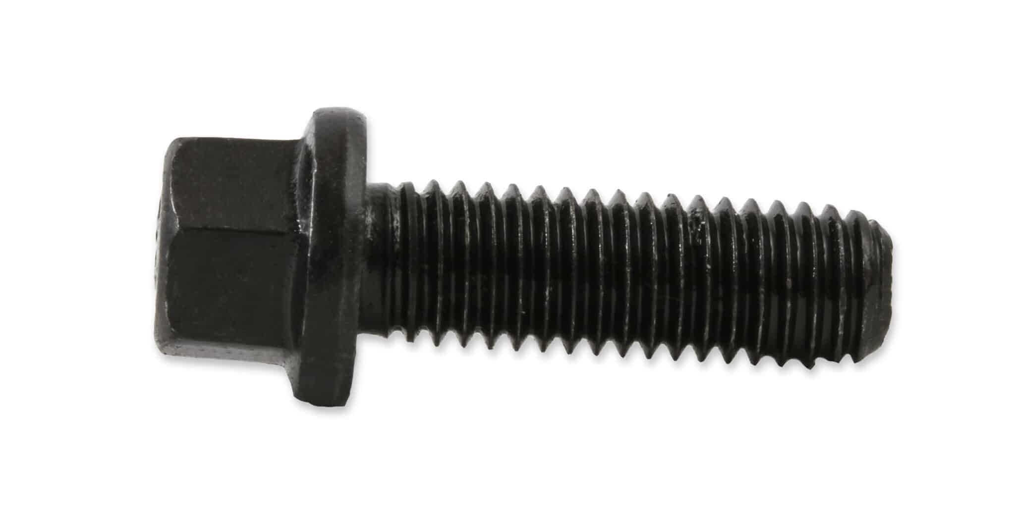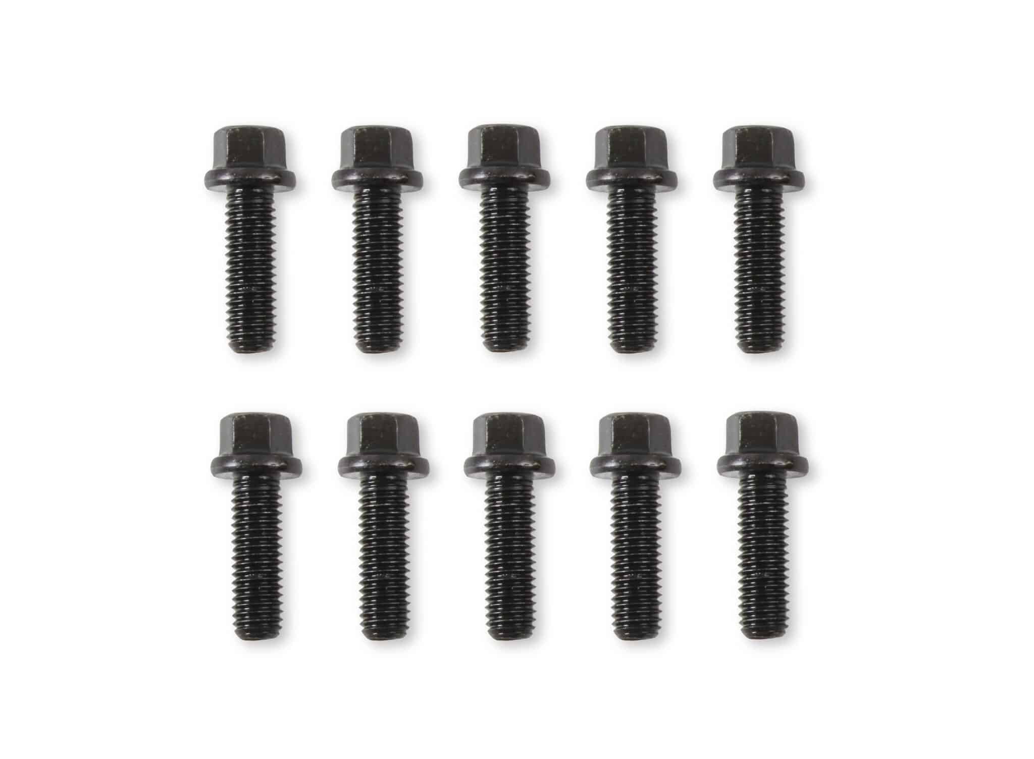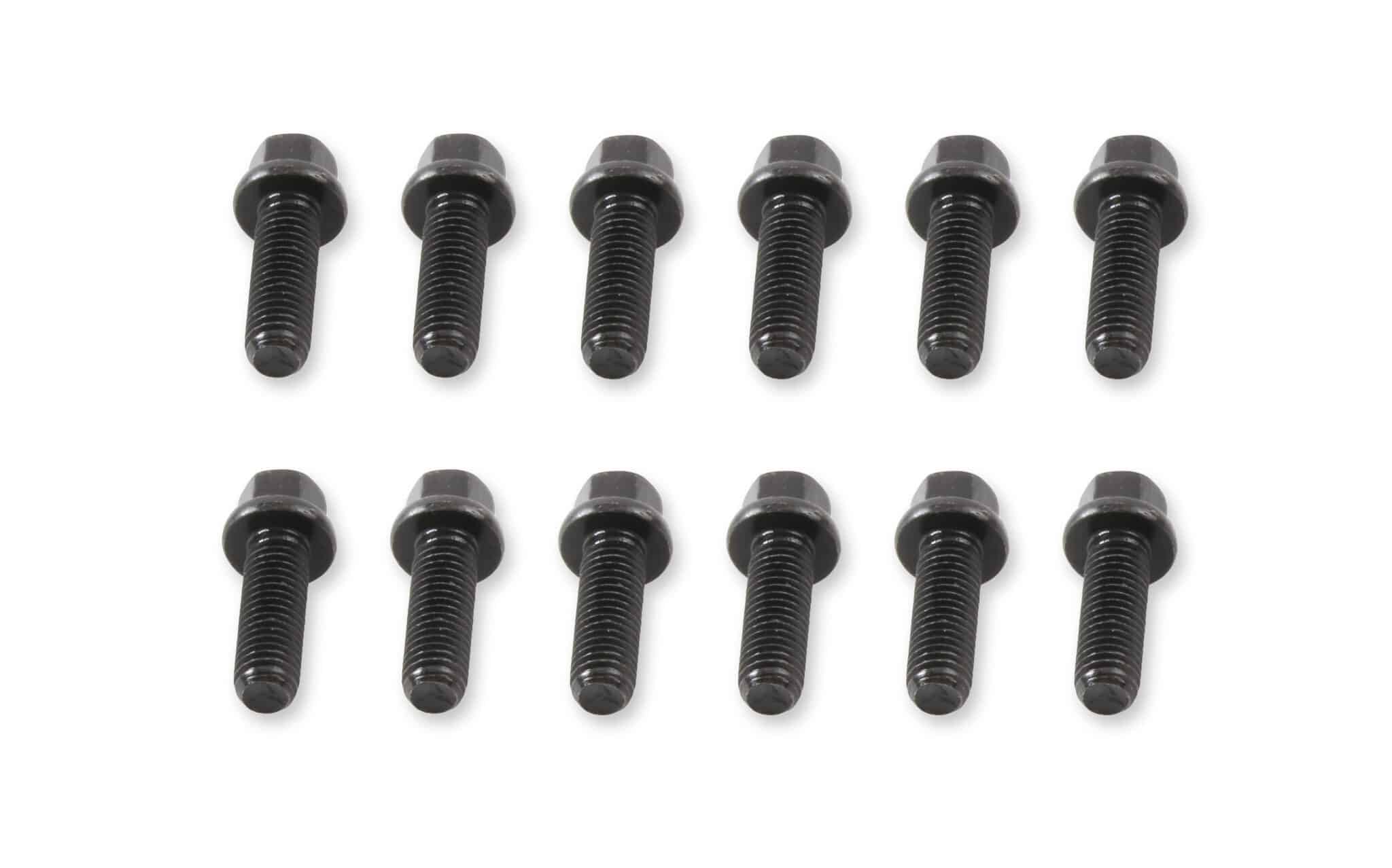 Black oxide finished carbon steel header bolts have a compact hex head and the flange is ideal for use where space is minimal – your typical header flange. Includes twelve (12) M8 – 1.25 x 25mm header bolts.