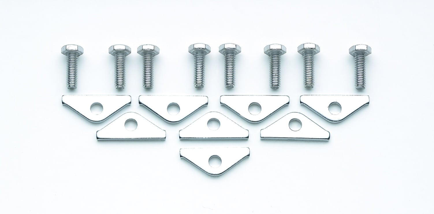 These brackets help prevent oil leakage from stamped valve covers. They allow you to tighten down covers and help to prevent bending the flange. Set of eight with 1/4 inch diameter Holes.