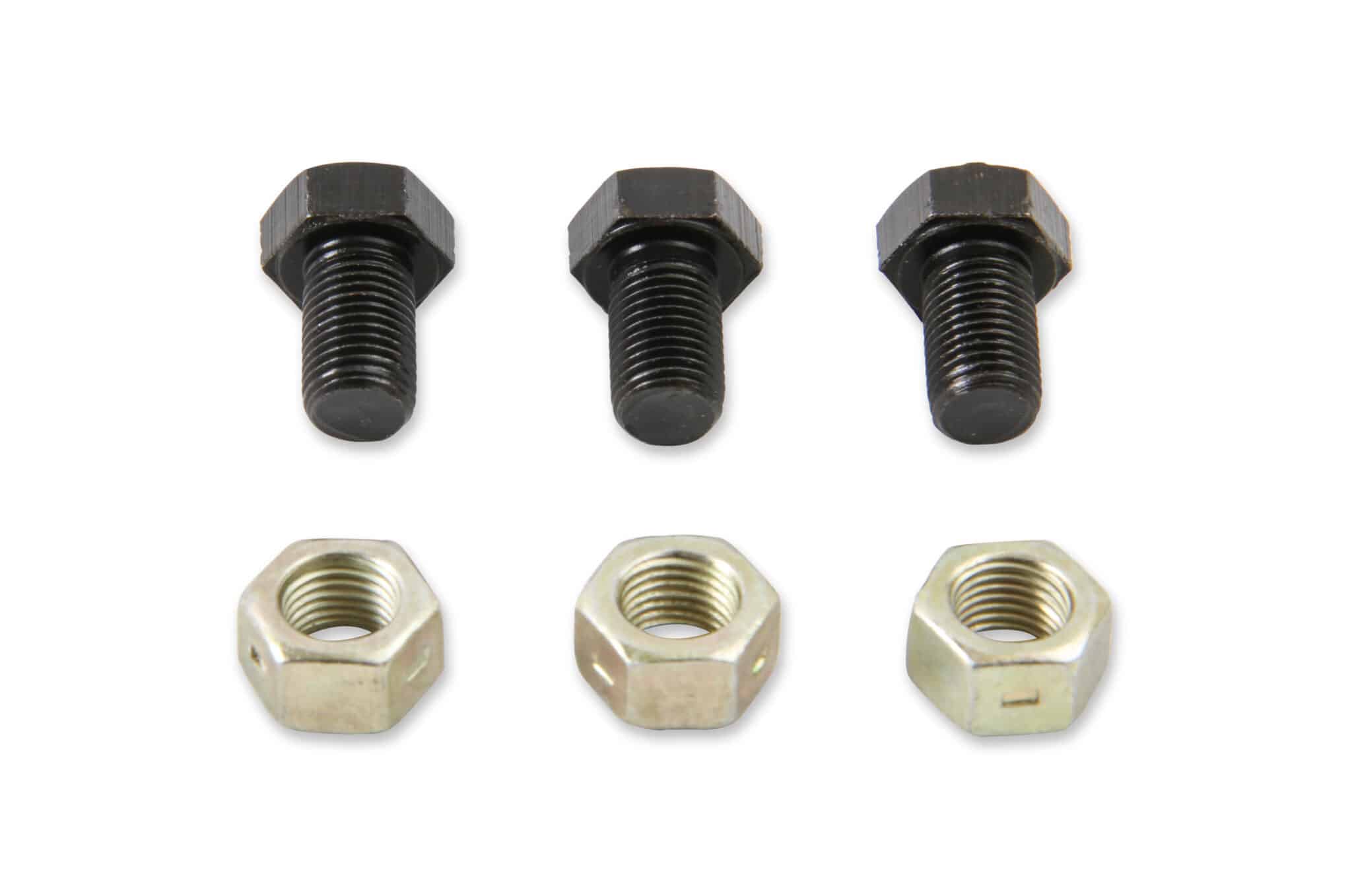 Mr. Gasket Torque Converter to Flexplate Bolts are forged from high quality steel and heat-treated for extra strength, these Grade 8 fasteners are a must for all hi-performance applications. Black plated finish helps resist rust and corrosion. Kits are complete with lock washers, where needed. Kits are complete with lock washers, where needed. 3/8-24 x 5/8 inch bolts with nuts. 3 per set.