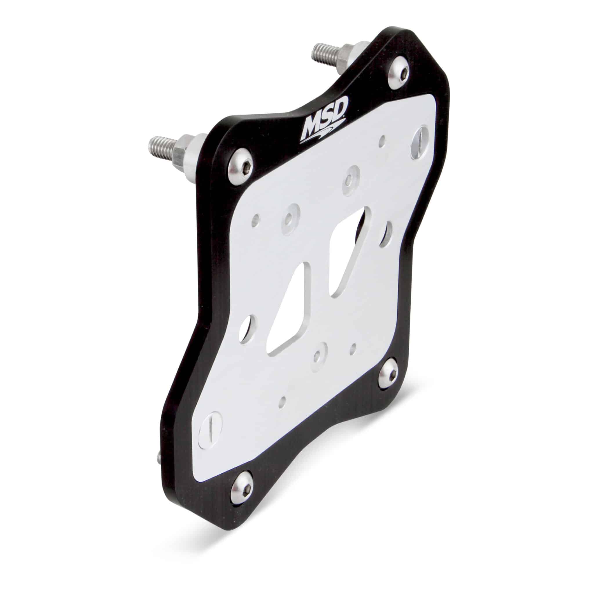 The MSD Bracket is made of a 2-piece design, the permanent mounted framework and the removable insert, via 2 Dzus fasteners. The brushed aluminum coil mounting brackets takes the guesswork out mounting your coils. This bracket is made of billet aluminum and 2- tone anodized for a great finish. Designed to work with MSD Blaster SS, and MSD 6, and 7-Series HVC-II Coils.