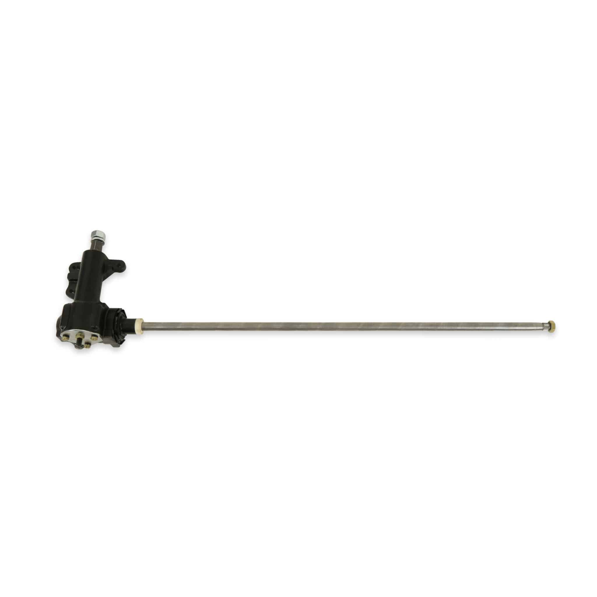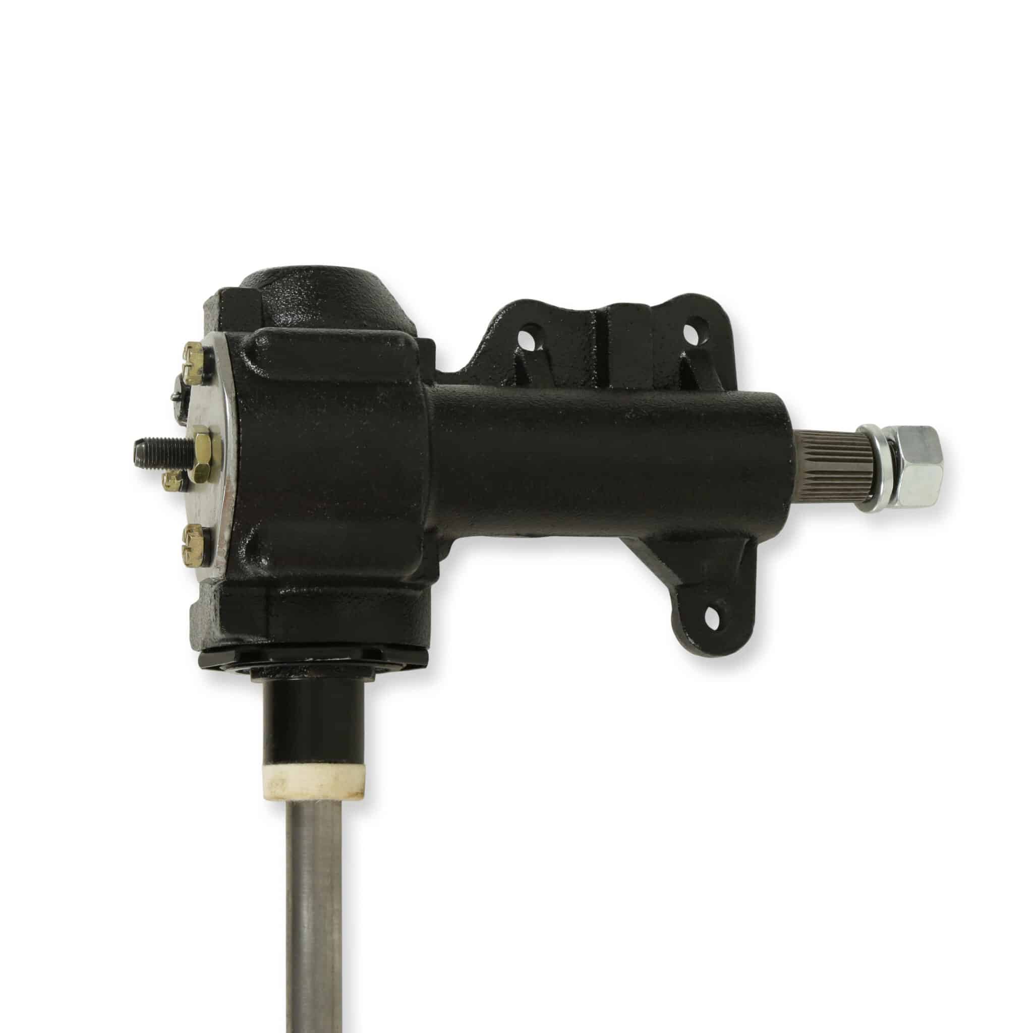 Scott Drake now offers their own brand of new steering boxes. These boxes feature a quick 16:1 ratio for a very responsive and precise steering system and improved needle bearing design for smoother operation. The direct bolt-in design requires no modifications or core charge. Drake’s 1964-1967 steering boxes feature the exclusive solid shaft design just like the originals. The 16:1 ratio is the same ratio used on all high-performance mustangs (GT, “K” car, Shelby, Mach 1, and Boss models). Power steering cars also feature the 16:1 ratio. Most of these boxes are worn out after 45+ years of service and are not rebuildable. Scott Drake’s new boxes eliminate play in the steering wheel, hesitation, and wandering. It improves high-speed tracking and an overall sense of control. This is also an excellent upgrade for regular production Mustangs with manual steering and slower 20:1 ratio. Note: Only fits early 1967 with 1″ section and long full-length steering shaft.