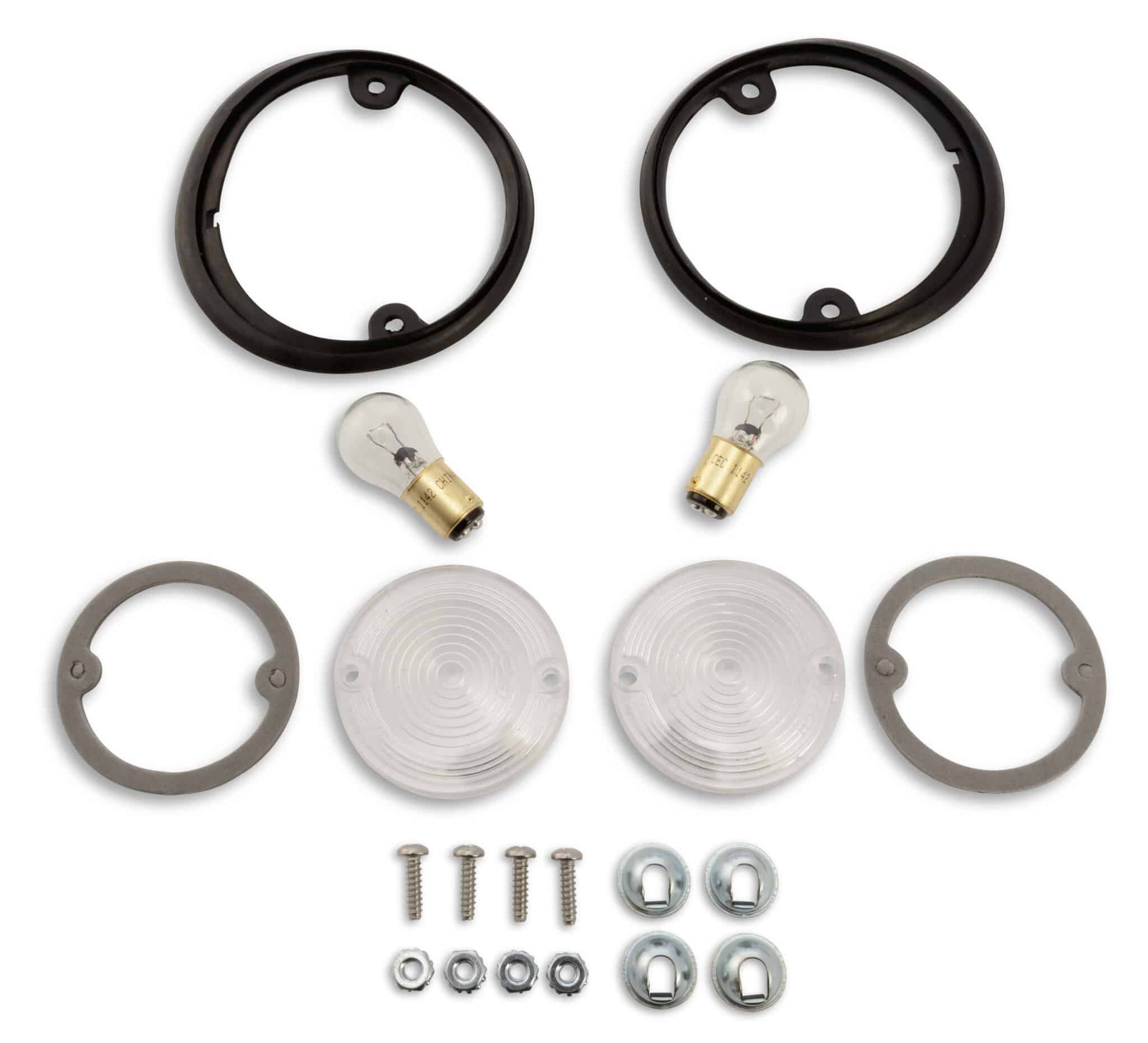 This official Ford licensed kit is highlighted by precision engineered die-cast reproduction light housings that include the original Ford part numbers cast into it. The show-quality finish housings also come pre-wired with the proper color-coded pigtails, as well as rubber body plugs that will make for a simple and smooth fitment. Light Kit also includes FoMoCo lenses that are clear and exact copies of the original with a FoMoCo logo. The back lamp lens gaskets are molded sponge and will help seal the lens to the housing,also included are brand new replacement bulbs, black rubber body pads, and the correct mounting hardware to install it all yourself.