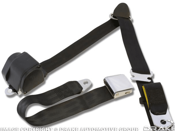 1964.5-73 Mustang 3-Point Seat Belt-Black 3-Point Retractable Seat Belt-Black